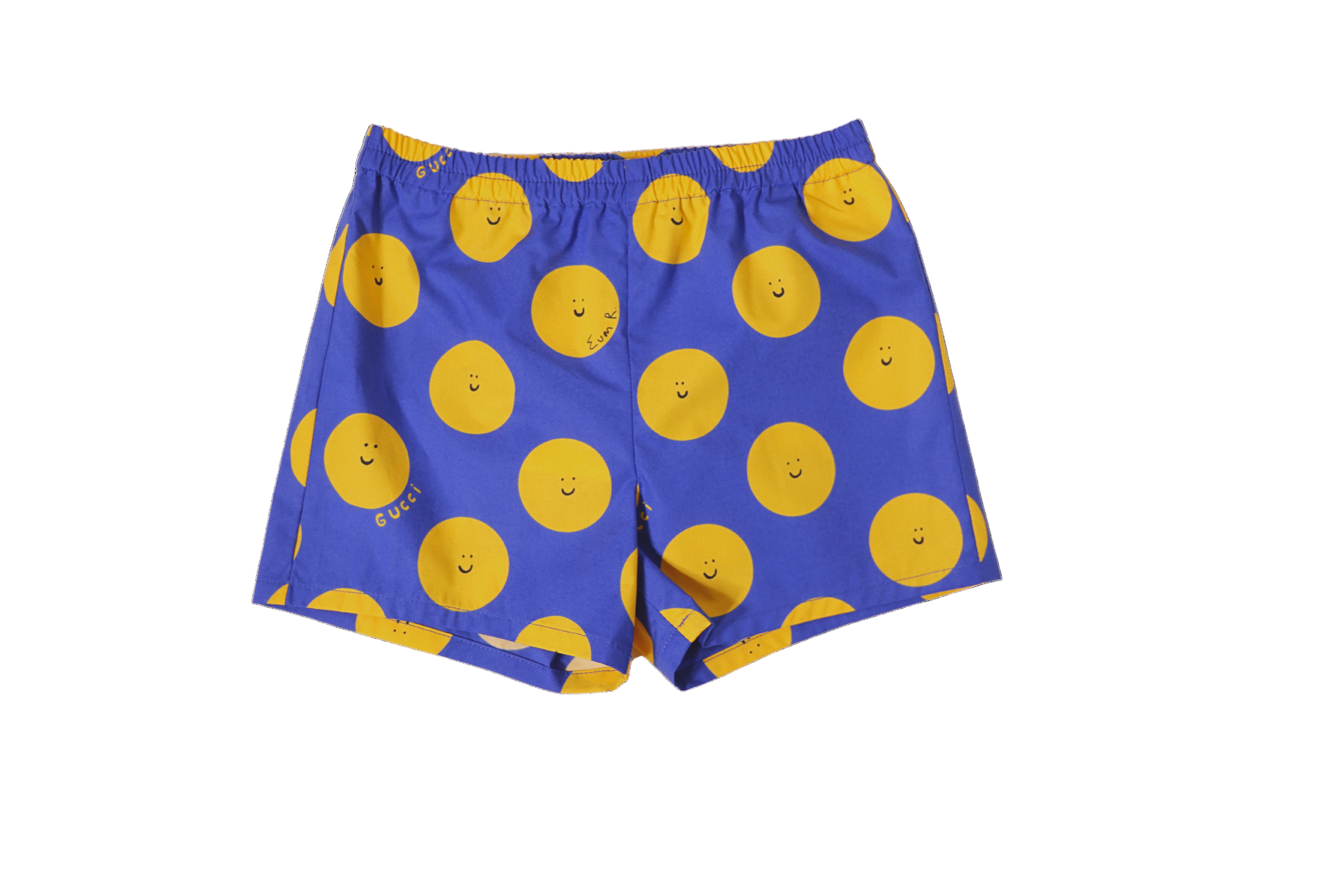 Die Gucci Kids Shorts mit fröhlichem Smiley-Allover in Blau sind perfekt für warme Tage. Der elastische Bund sorgt für hohen Tragekomfort und viel Bewegungsfreiheit. Ein verspielter Designer-Look für den Sommer.