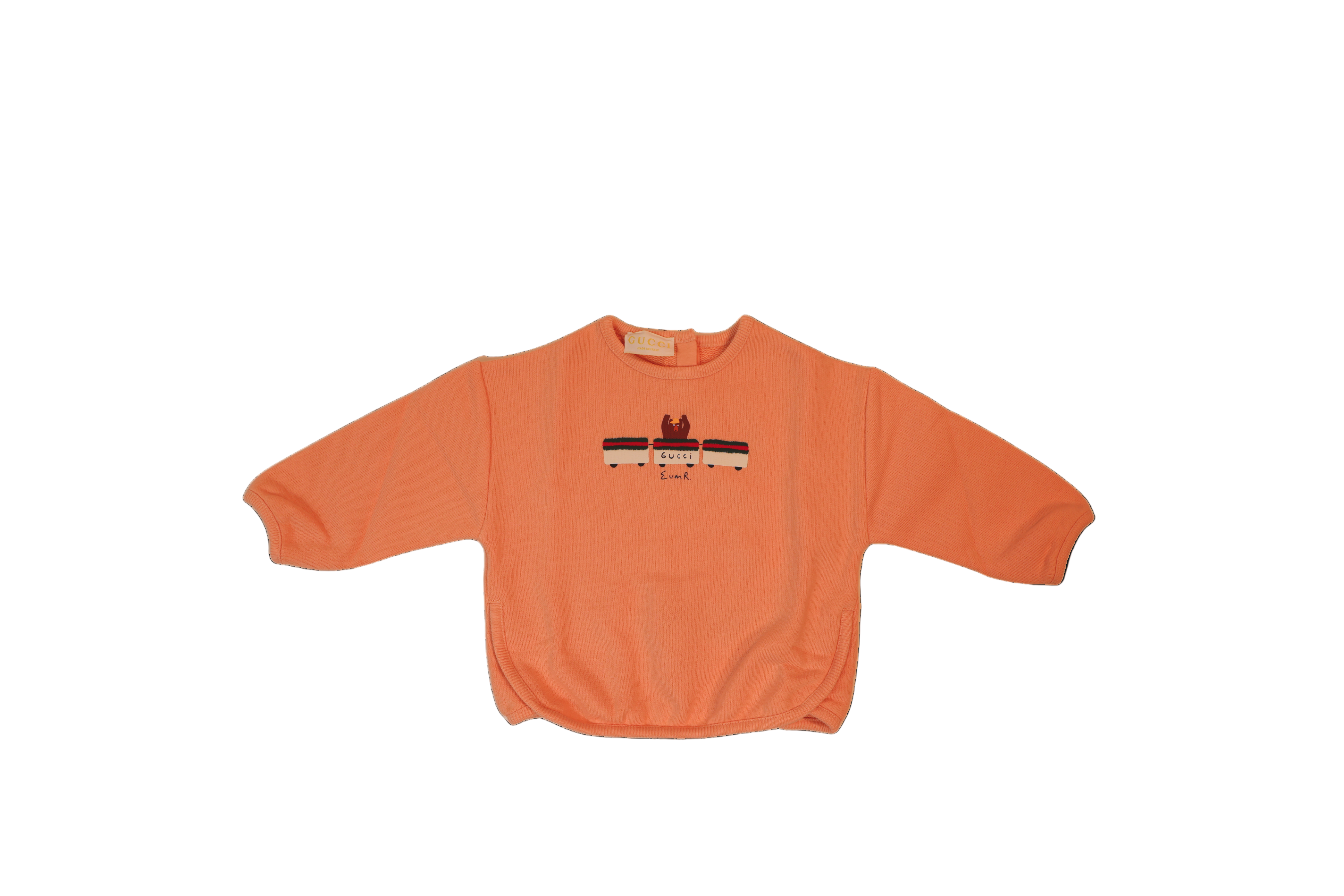 Das Gucci Kids Sweatshirt überzeugt mit einem weichen Tragegefühl, hochwertiger Verarbeitung und einem liebevollen Logo-Motiv mit Signature-Streifen auf der Front. Der warme Orangeton sorgt für einen frischen, modernen Look, während der bequeme Schnitt maximale Bewegungsfreiheit bietet. Die weiche Sweatqualität ist besonders hautfreundlich und ideal für empfindliche Babyhaut.
