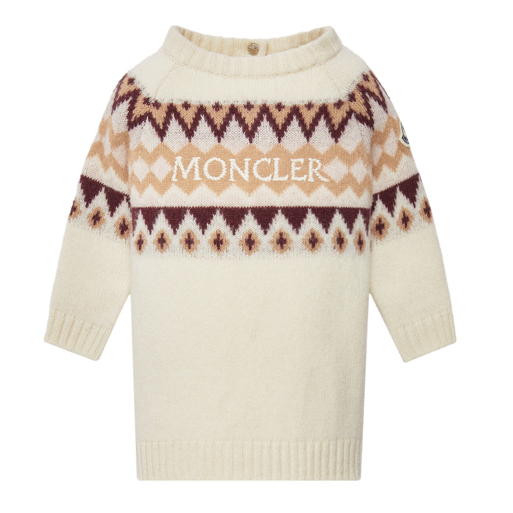 Das Moncler Enfant Wollkleid sorgt dafür, dass sich kleine Entdecker rundum wohlfühlen. Es ist aus weicher Kammwolle gefertigt und bietet durch den leichten Strickstoff höchsten Komfort. Das Kleid wird durch ein geometrisches Logo-Jacquard-Muster abgerundet und verleiht dem Design eine stilvolle Note.