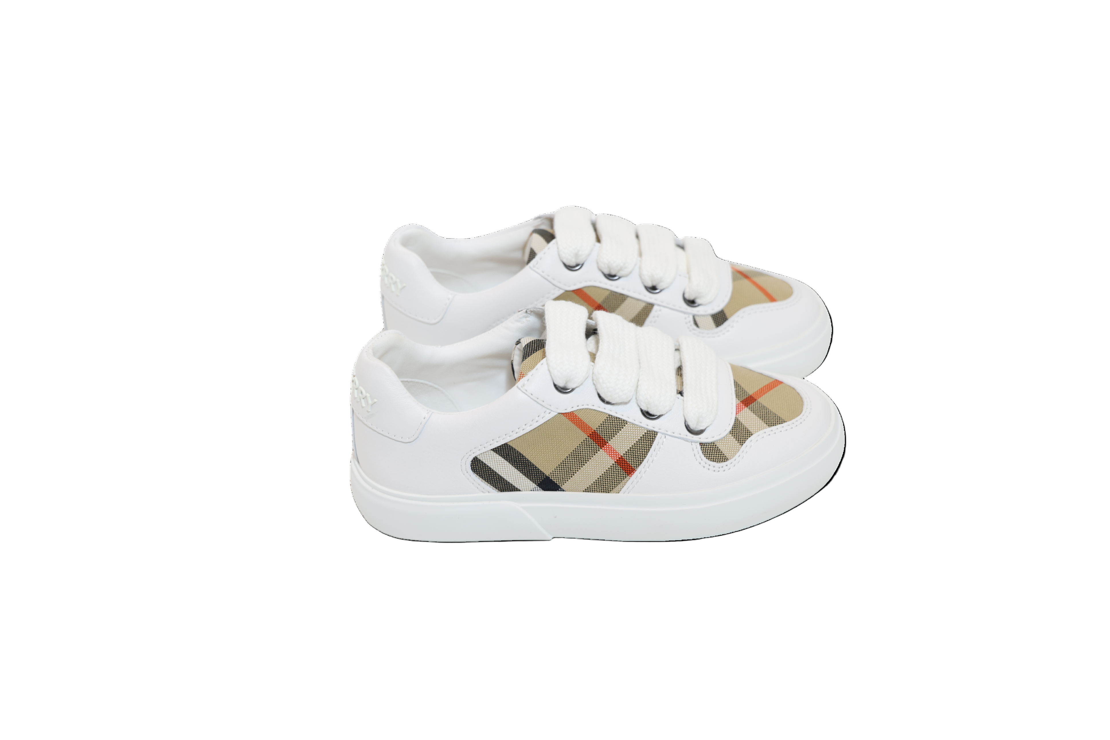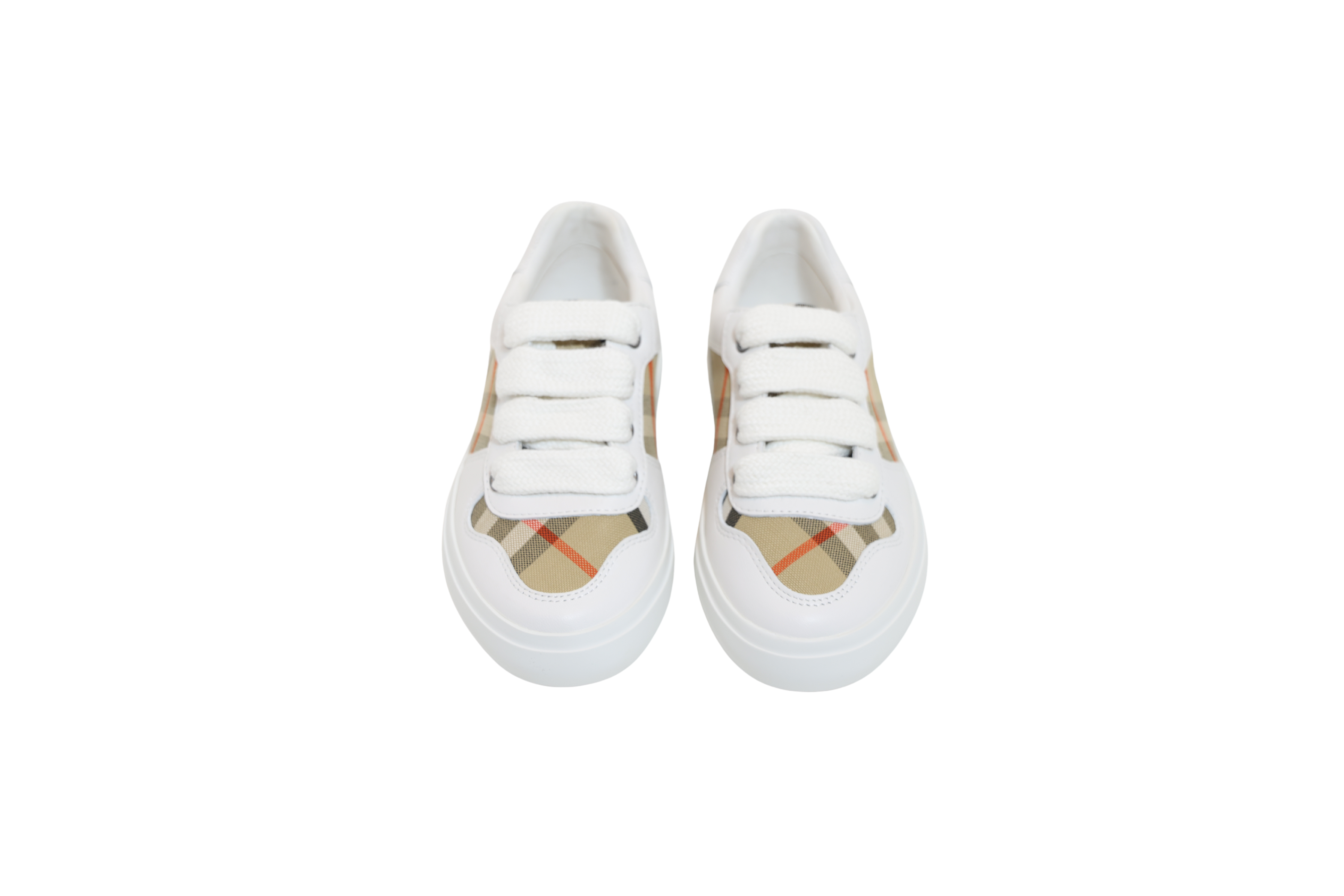 Kleine Füße, großer Style! Diese Burberry Kids Sneaker vereinen klassisches Design mit kindgerechtem Komfort. Das ikonische Burberry Check-Karomuster verleiht jedem Outfit einen Hauch von Luxus, während die breiten Schnürsenkel nicht nur praktisch sind, sondern auch für einfaches An- und Ausziehen sorgen. Perfekt für aktive Kids, die Wert auf Qualität und trendiges Aussehen legen. Ein Statement-Piece für die Kleinsten!