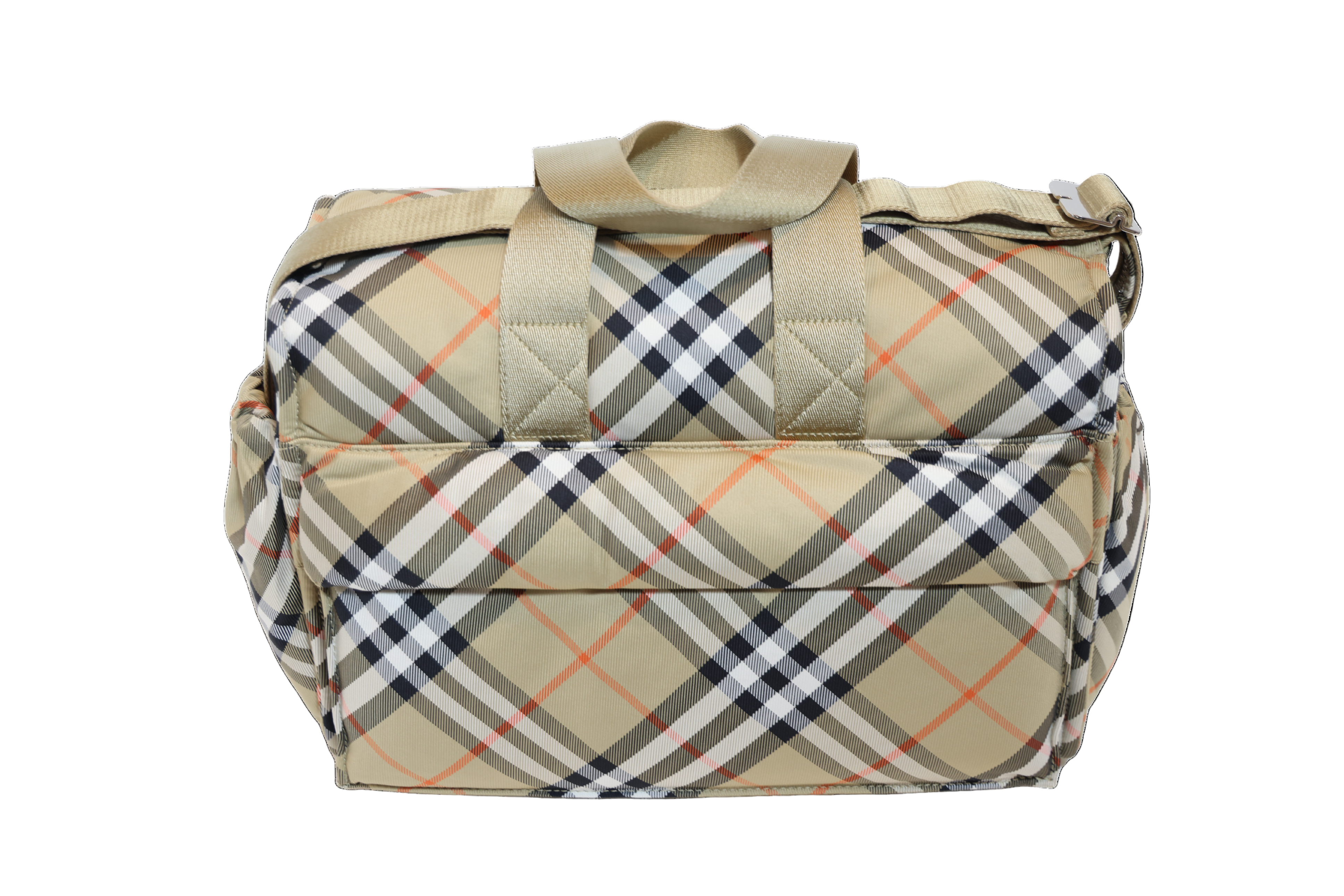 Die perfekte Begleiterin für unterwegs! Diese geräumige Wickeltasche besticht mit dem klassischen Burberry Check-Karomuster und praktischem Design.
