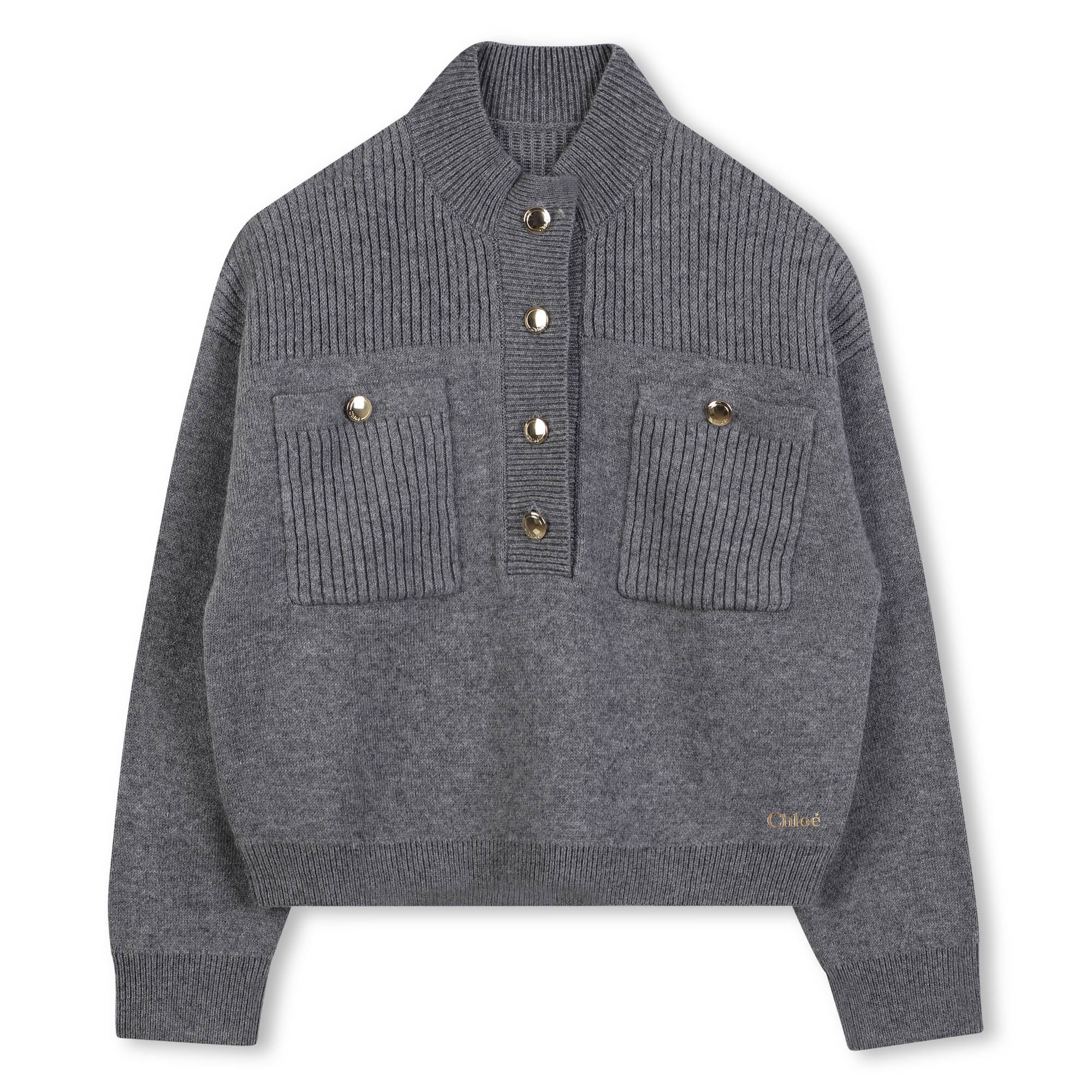 Chloé Kids Strickpullover mit Knöpfen & Taschen - grau