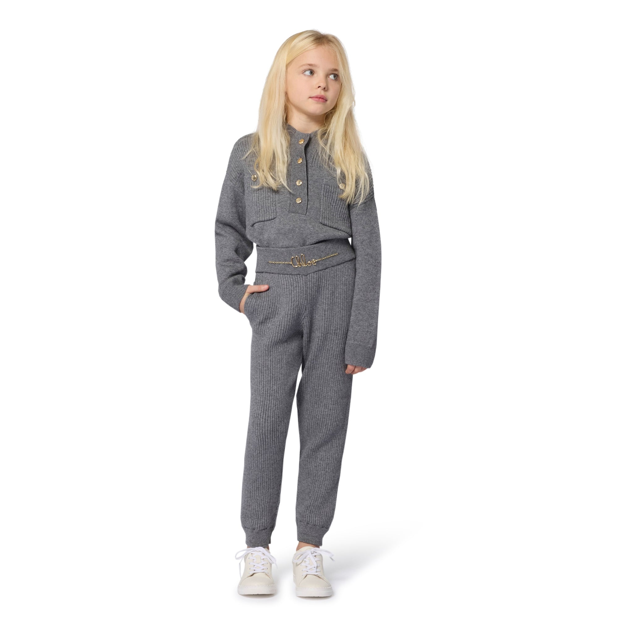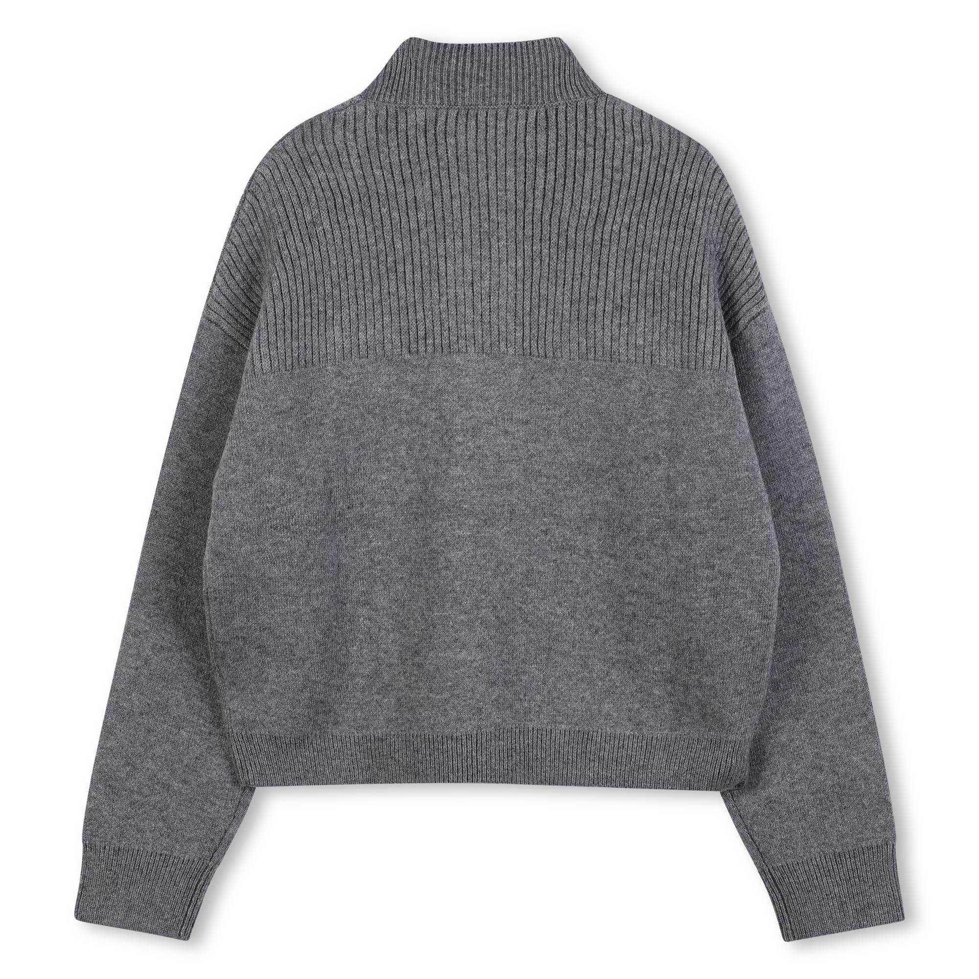 Der Chloé Kids Strickpullover in Grau vereint modernes Design mit hochwertiger Verarbeitung. Aus einer weichen Baumwoll-Woll-Mischung gefertigt, sorgt er für ein angenehmes Tragegefühl und hält zuverlässig warm. Das besondere Highlight sind die beiden aufgesetzten Brusttaschen im Rippenstrick, die durch goldfarbene Knöpfe elegant betont werden. Auch die Knopfleiste am Stehkragen verleiht dem Pullover einen stilvollen Look. Ein vielseitiges Kleidungsstück, das sich perfekt zu Jeans, Röcken oder Strickhosen kombinieren lässt.