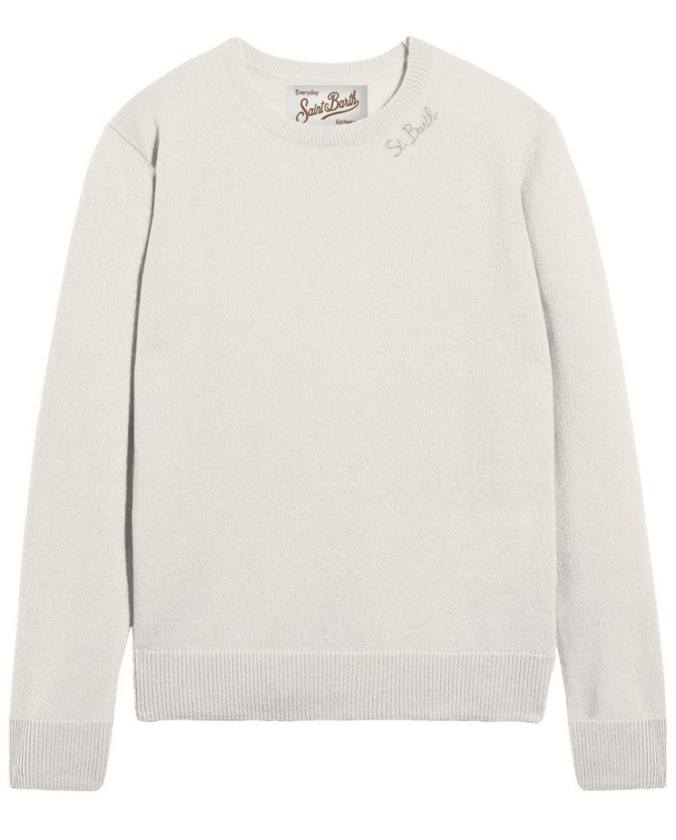 Klassischer Wollpullover mit tonaler St. Barth-Stickerei auf der Brust