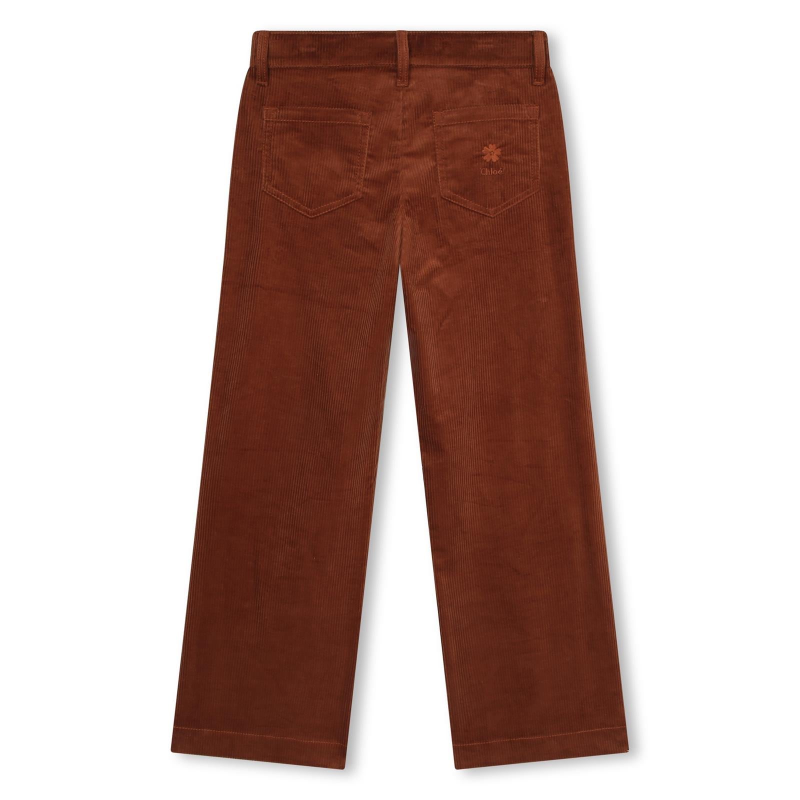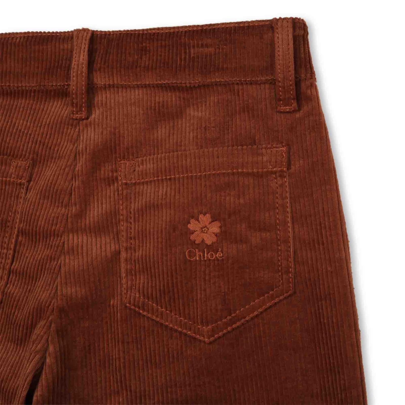 Diese Chloé Cordhose ist ein wahrer Blickfang. Mit ihrer braunen Farbe und dem ausgestellten Bein verleiht sie jeder Frau eine elegante und edle Ausstrahlung. Die Blumenstickerei und das Logo auf der Gesäßtasche sind ein exklusives Detail, das den luxuriösen Charakter dieser Hose unterstreicht. Perfekt für Frauen, die Wert auf Stil und Qualität legen.