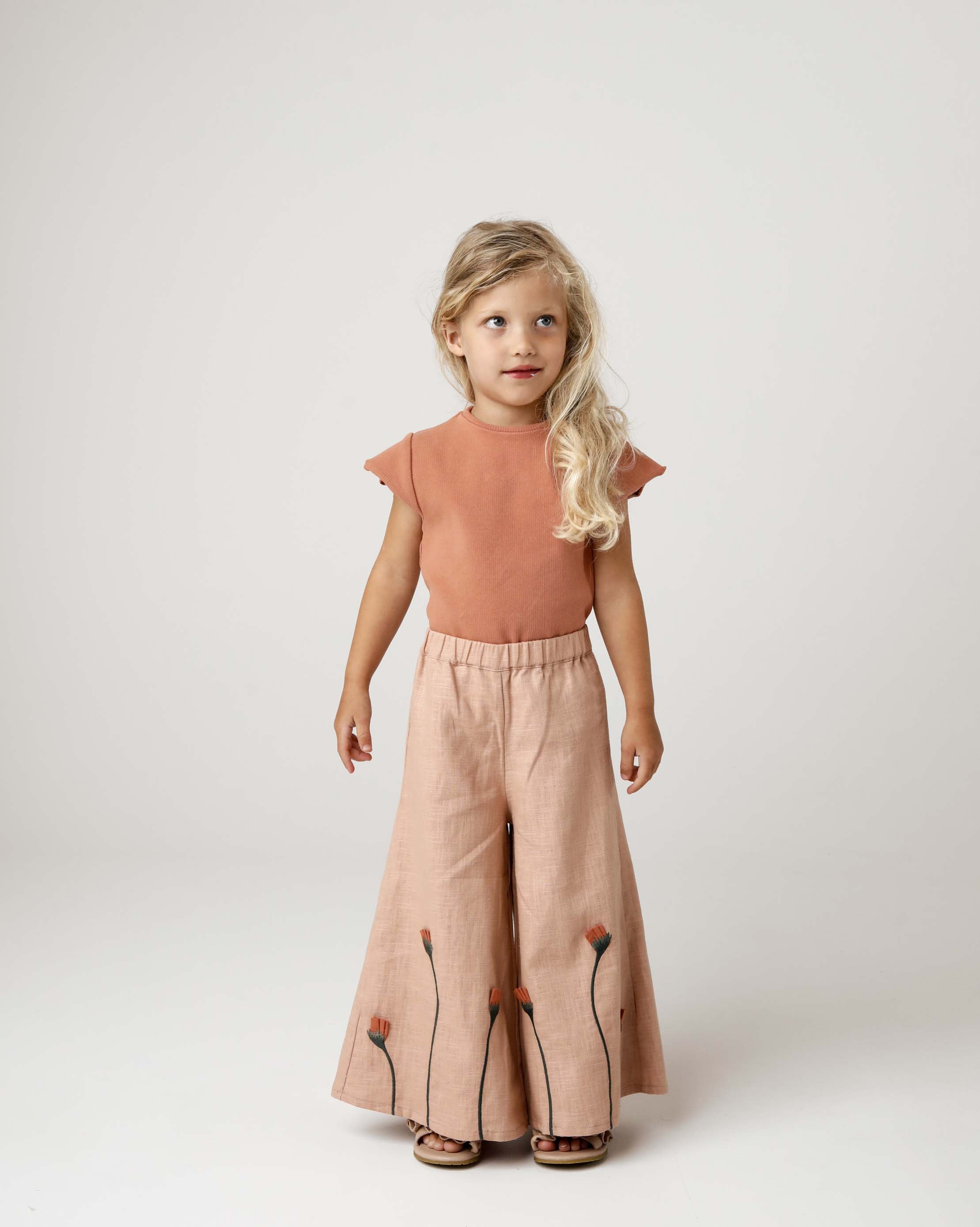 Entdecke den Sommer mit den Donsje Fifis Leinenhosen in Poppy! Dank Druckknöpfen am Rücken und elastischem Bund perfekt für kleine Entdeckerinnen. Die einzigartigen 3D-verzierten Blumen machen sie zum unverwechselbaren Sommerliebling und perfekten Begleiter für Abenteuer.