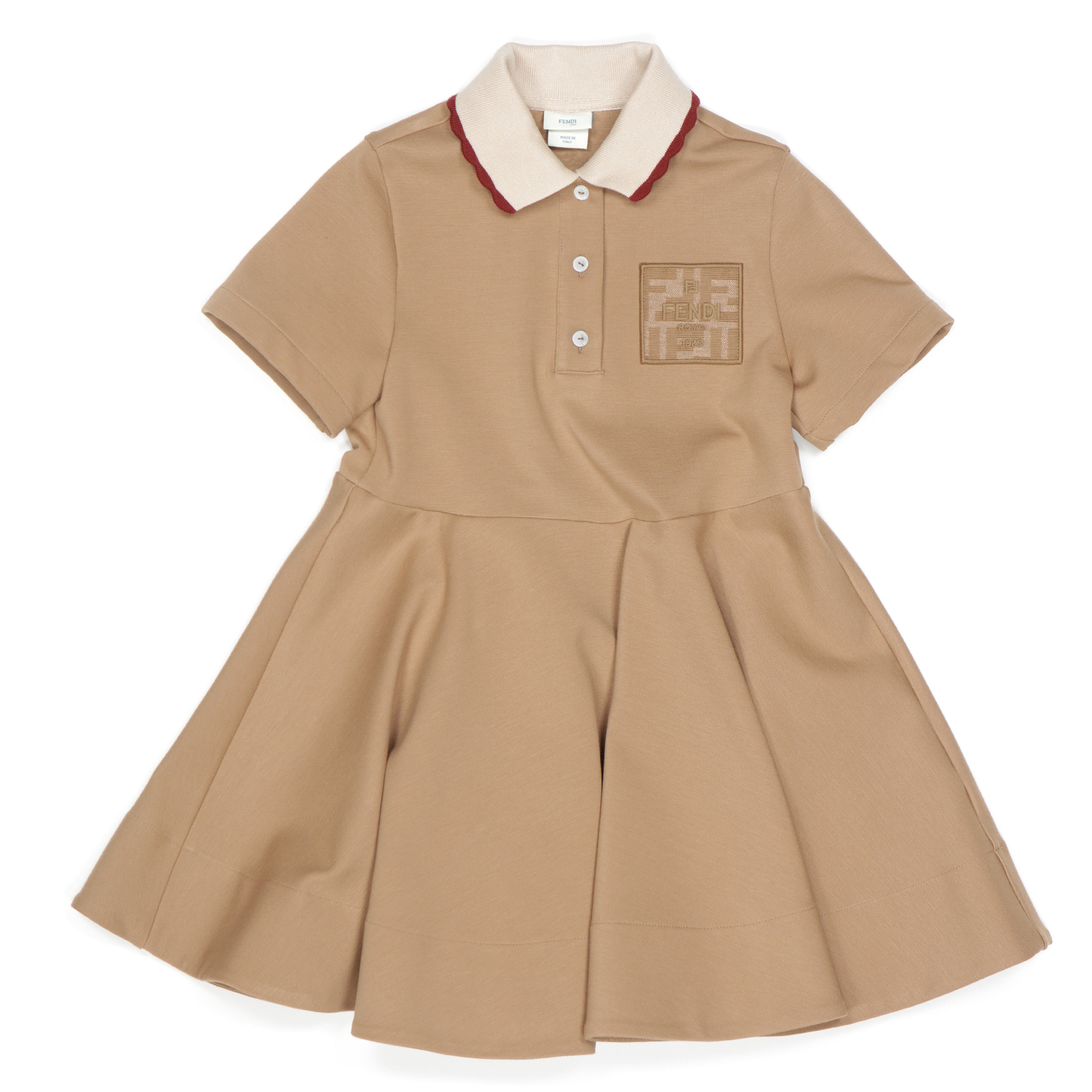 Das Fendi Kids Kleid kombiniert sportliche Lässigkeit mit eleganter Raffinesse. Der klassische Polokragen mit kontrastfarbener Kante und das strukturierte FF-Logo auf der Brust verleihen dem Kleid den unverkennbaren Fendi-Look. Der weiche, leicht elastische Stoff sorgt für optimalen Tragekomfort und Bewegungsfreiheit. Perfekt für stilvolle Alltagslooks oder besondere Anlässe – Made in Italy.