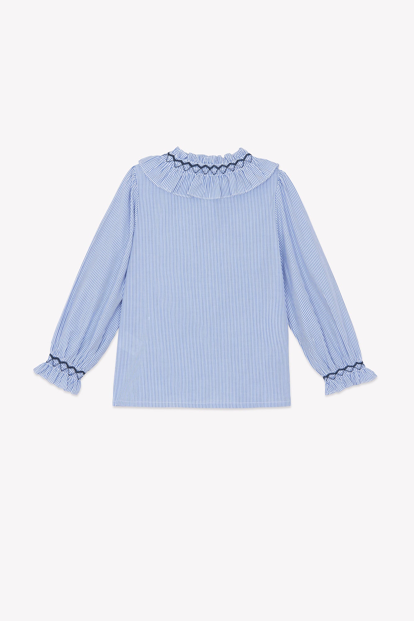 Das Tartine et Chocolat Hemd – Hellblau überzeugt mit liebevollen Details und hochwertiger Verarbeitung. Kragen und Manschetten sind mit feiner, handgefertigter Stickerei in Marineblau verziert und verleihen dem Hemd einen Hauch von Eleganz und Raffinesse. Die leichte Baumwollqualität sorgt für angenehmen Tragekomfort – ideal für den Alltag oder besondere Anlässe. Ein zeitloses Stück, das jedem Outfit eine stilvolle Note verleiht.