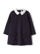 Das Il Gufo Kleid in Blau mit elegantem weißem Hemdkragen ist die perfekte Wahl für festliche Anlässe. Der klassische Kontrast zwischen dem tiefen Blau und dem weißen Kragen verleiht dem Kleid eine edle Note und macht es zu einem stilvollen Hingucker. Gefertigt aus hochwertigen Materialien, bietet das Kleid angenehmen Tragekomfort und Bewegungsfreiheit, ideal für kleine Mädchen an besonderen Tagen. Ein zeitloses und charmantes Kleidungsstück, das Eleganz und kindliche Verspieltheit vereint.