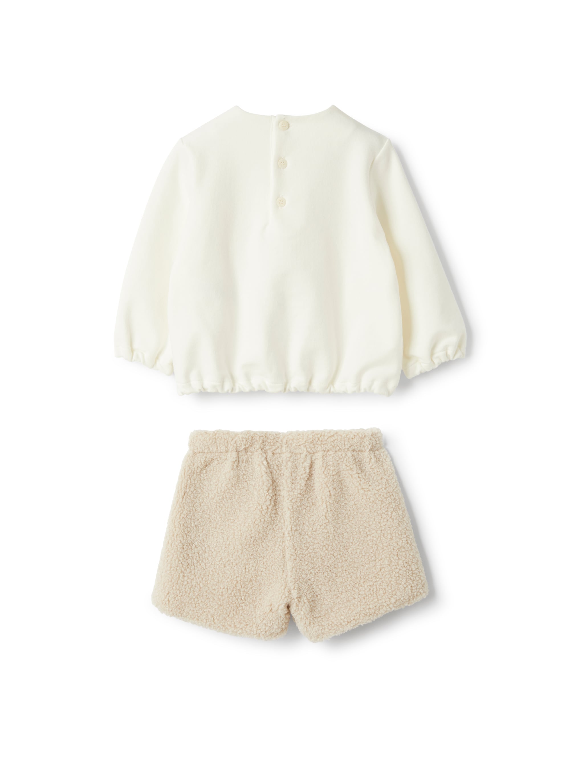 Das Il Gufo Set in der Farbe Milk ist ein kuscheliges und süßes Outfit für Baby-Mädchen. Dieses Set strahlt mit seiner zarten, cremeweißen Farbe pure Sanftheit aus und bietet hohen Tragekomfort durch weiche, hochwertige Materialien, die sanft zur empfindlichen Babyhaut sind. Perfekt für gemütliche Tage zu Hause oder besondere Anlässe, verleiht dieses Set jedem Look eine stilvolle und niedliche Note. Ein wunderschönes Must-have für die Garderobe Ihrer Kleinen.