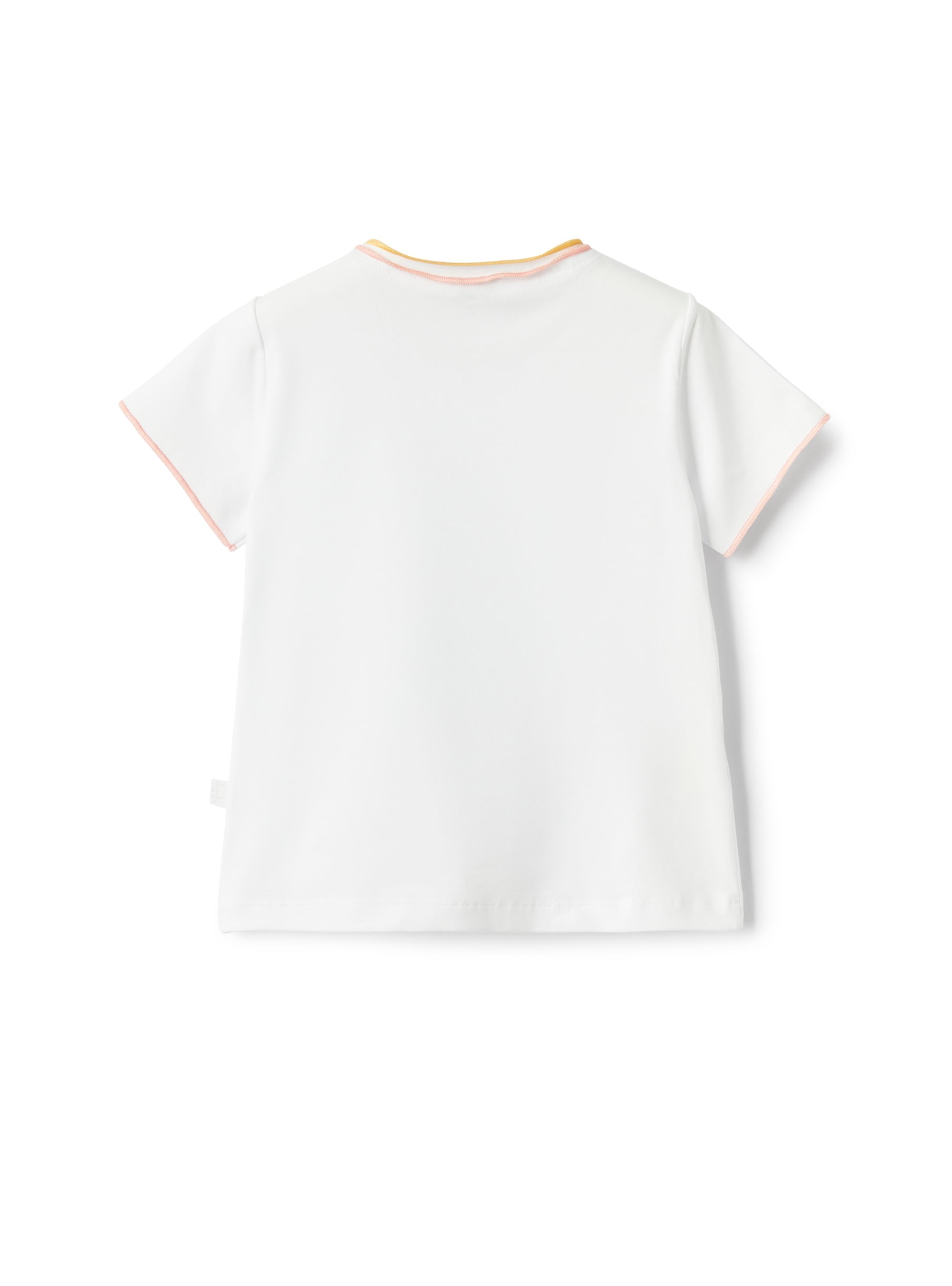 Dieses weiße T-Shirt von Il Gufo für Mädchen besteht aus weicher Baumwolle und Elasthan für optimalen Komfort. Es hat einen klassischen Rundhalsausschnitt und kurze Ärmel mit kontrastierenden Bordüren. Die gerade Passform sorgt für eine bequeme Passform, ideal für den Alltag.