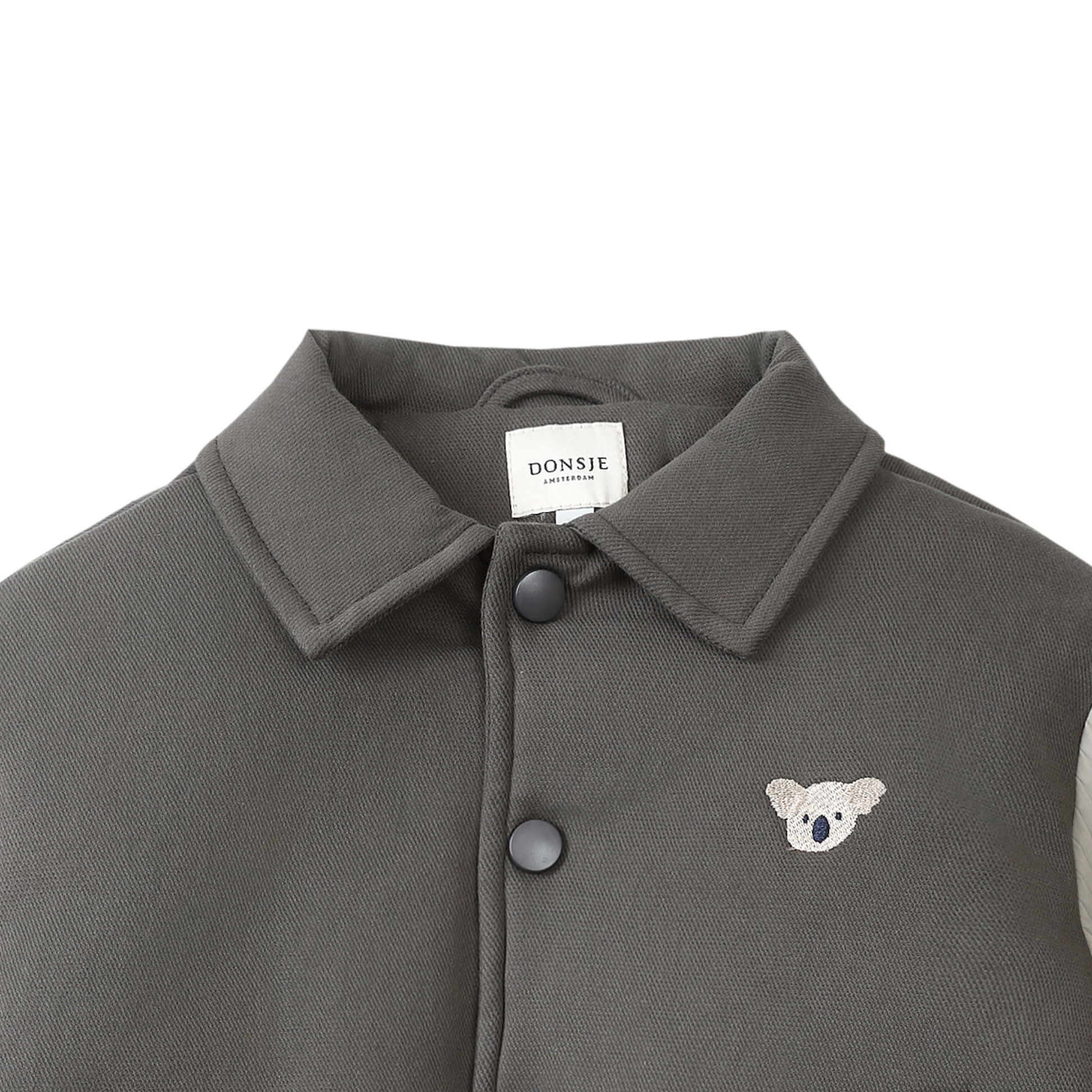 Donsje Pidas Collegejacke in Grau mit Panda Patch