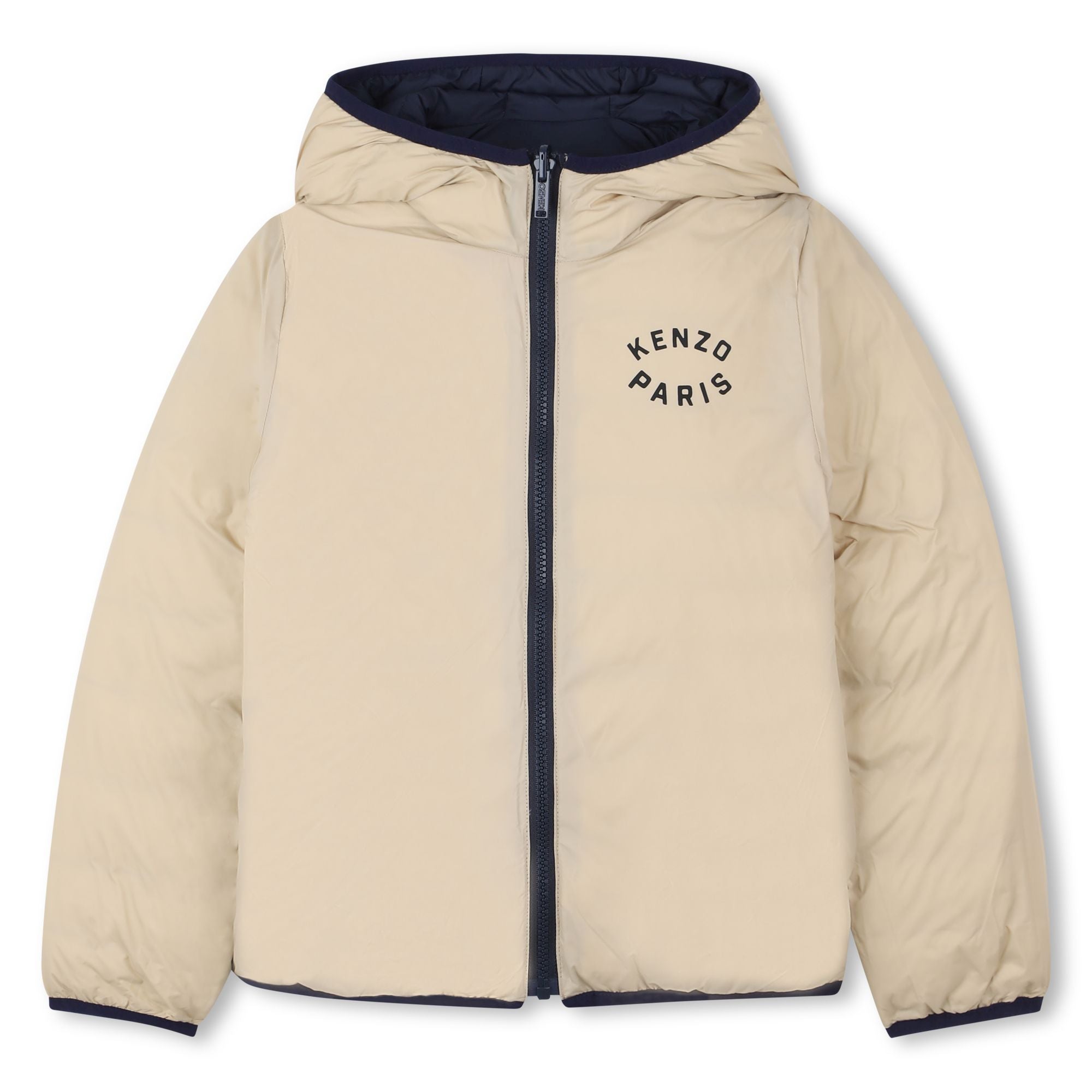 Die Kenzo Kids Wendejacke vereint Funktionalität mit modernem Style und bietet zwei Looks in einer Jacke. Eine Seite zeigt sich in klassischem Dunkelblau mit dem ikonischen Tiger-Logo auf der Brust, die andere in hellem Beige für einen schlichteren Auftritt. Die Füllung aus RDS-zertifizierten Daunen und Federn sorgt für angenehme Wärme, während das leichte Polyamid-Material Bewegungsfreiheit garantiert. Mit Kapuze, seitlichen Taschen und Reißverschluss ist die Jacke praktisch und vielseitig – perfekt für Schule, Freizeit und kalte Tage.