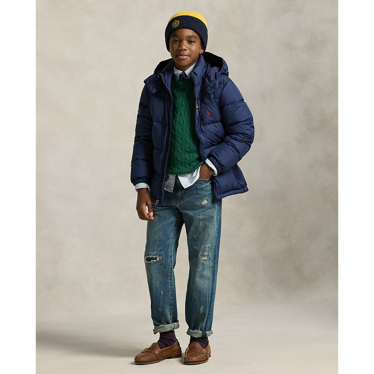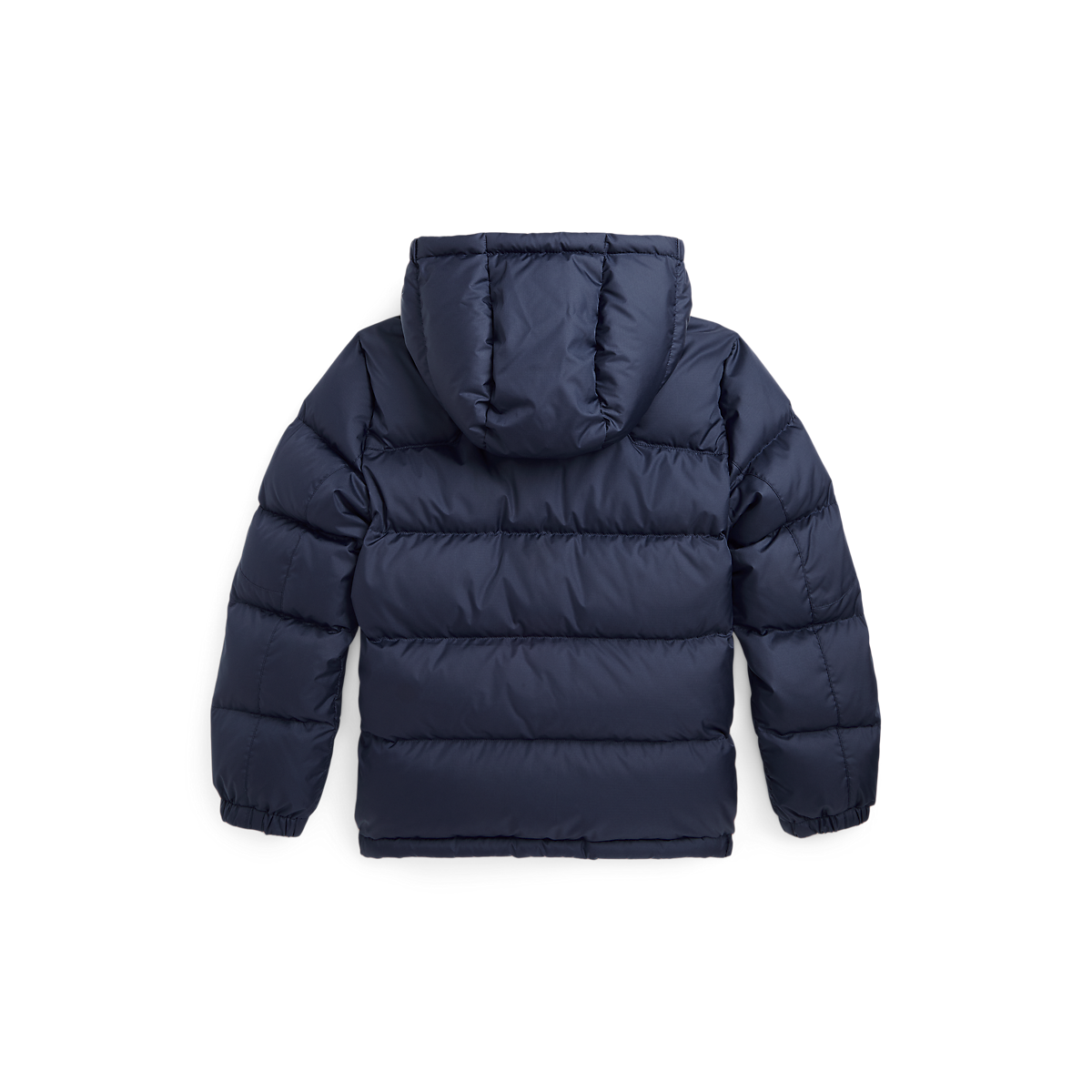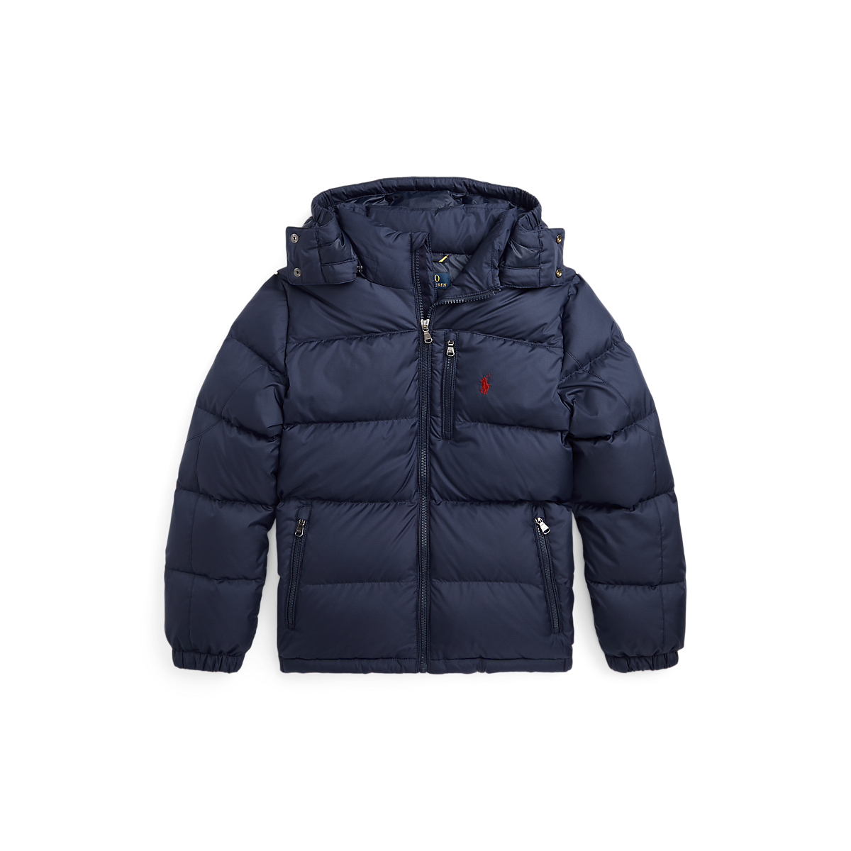 Diese Polo Ralph Lauren Kids Jacke mit wasserabweisendem Ripstop-Außenmaterial und einer Daunenfüllung mit einer Bauschkraft von 650 cuin ist für zusätzlichen Schutz mit einer abnehmbaren, mit Druckknöpfen befestigten Kapuze versehen. Sie ist links auf der Brust mit unserem charakteristischen Pony bestickt.