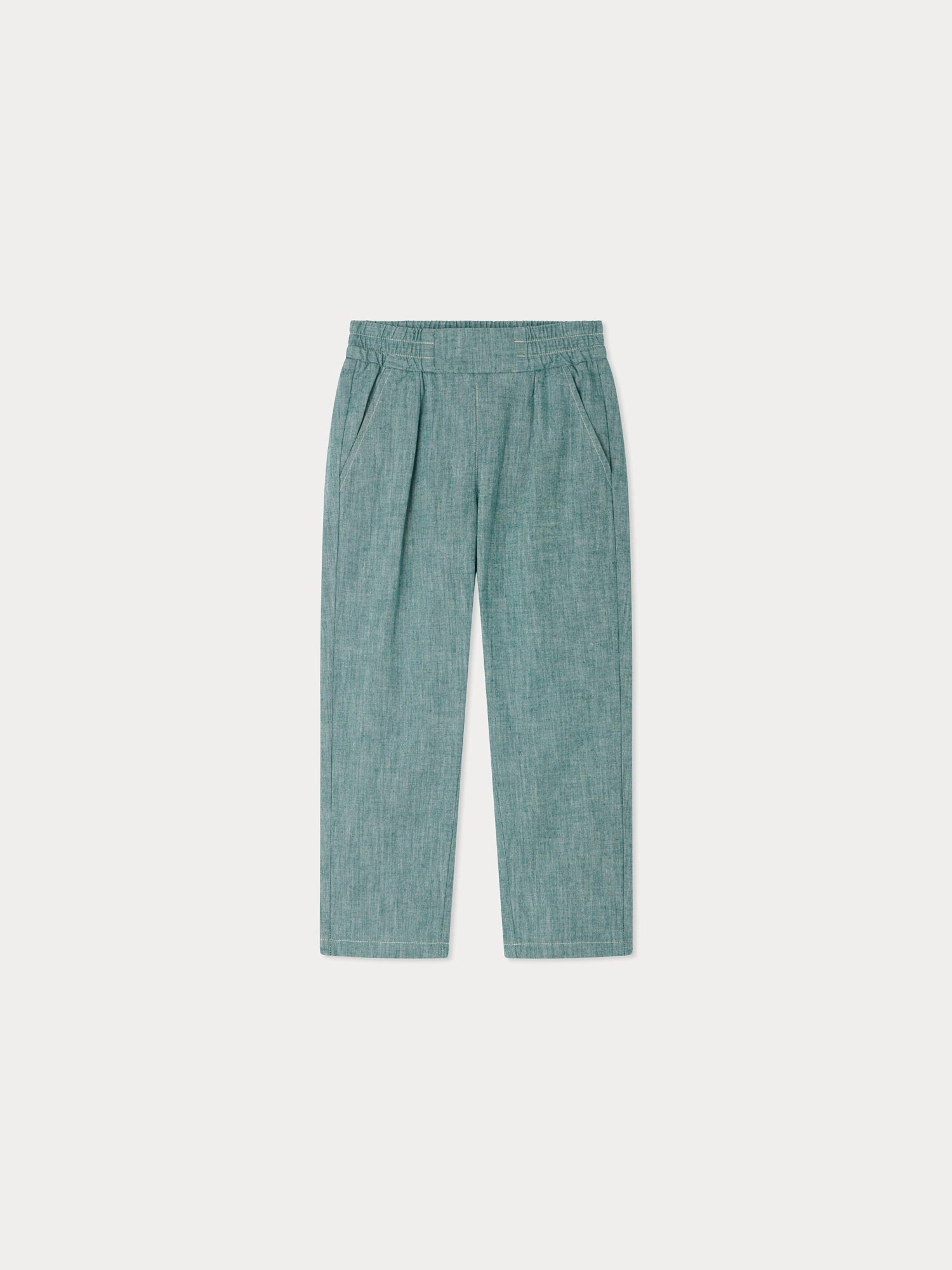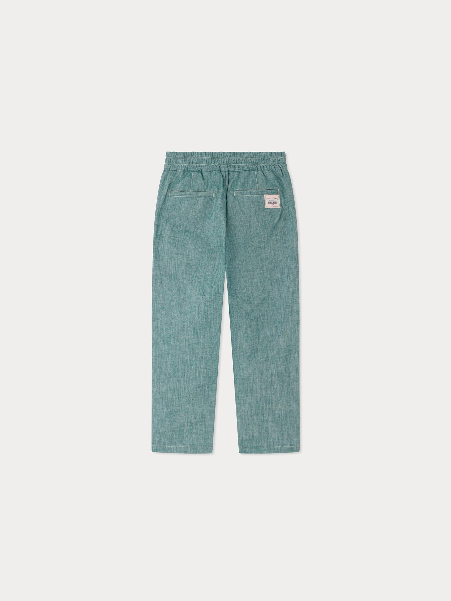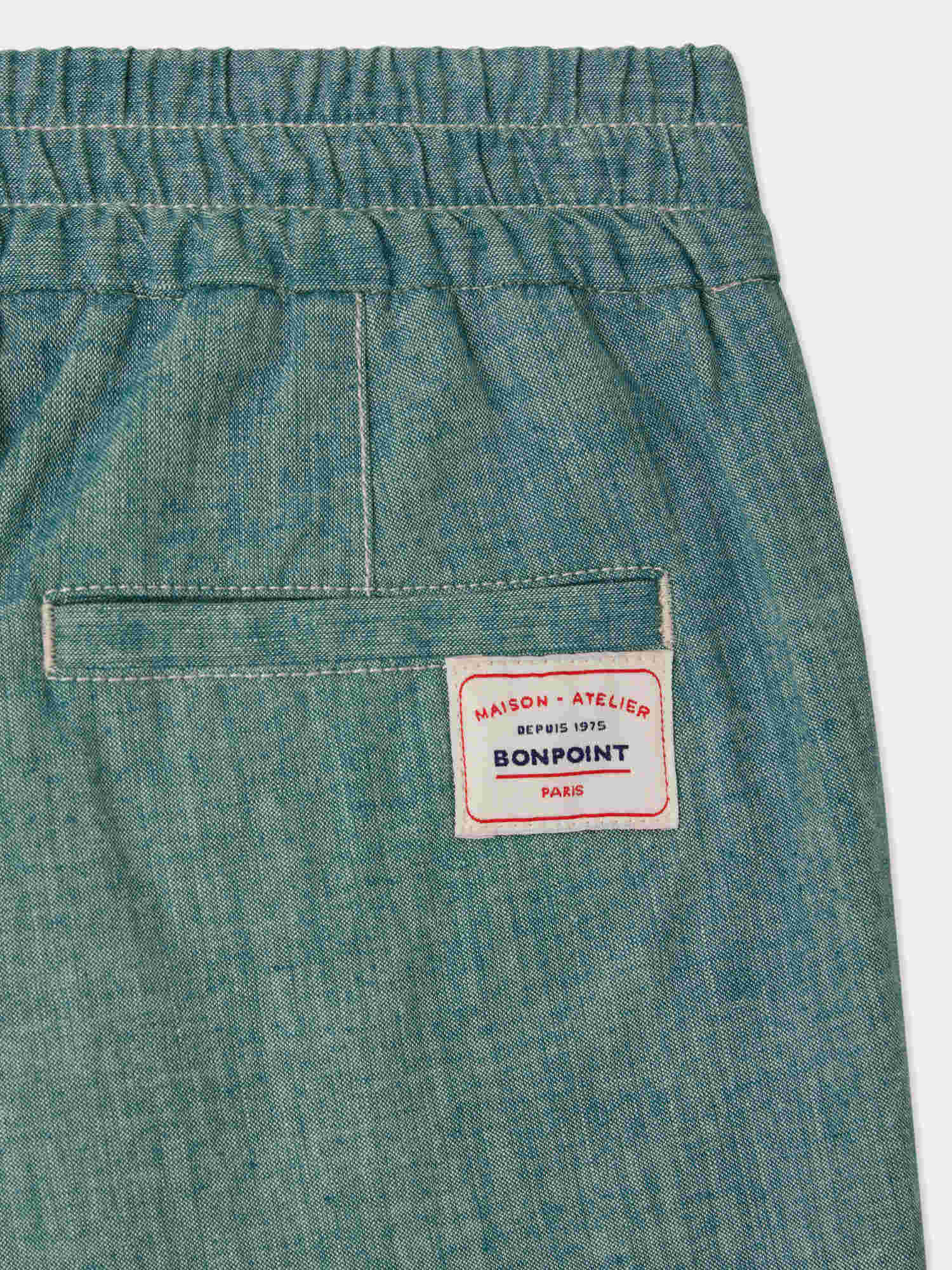 Die Bonpoint - Hose Tilyo für Jungen besteht aus farbenfrohem Chambray aus zertifizierter Bio-Baumwolle und bietet einen einzigartigen Stil. Die vorderen Kellerfalten und der elastische Bund verleihen dem geradlinigen Design zusätzliche Form und Struktur.