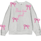 Graues Sweatshirt mit rosa Schleifen und Schriftzug