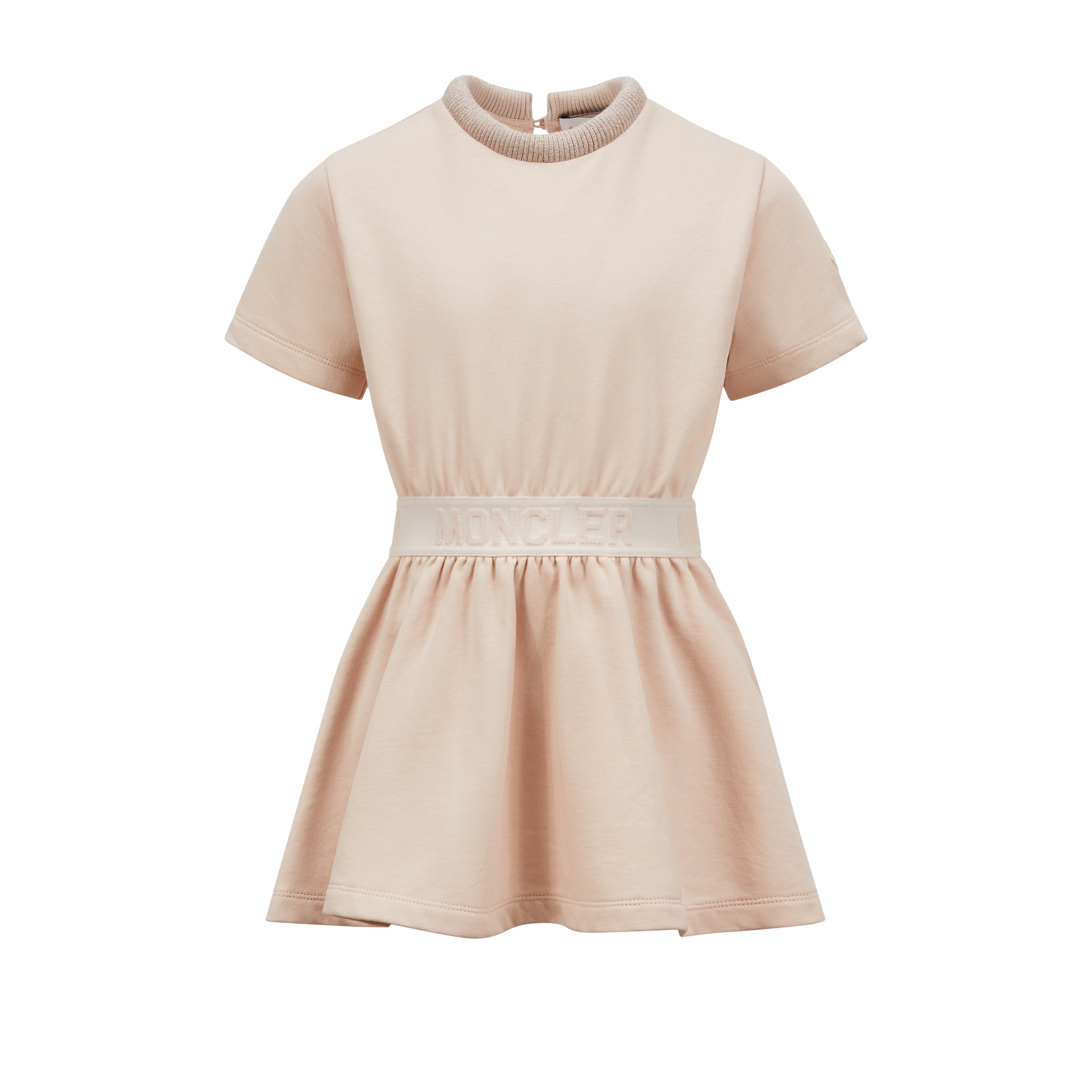 Das süße Moncler Enfant - Kleid mit Logobesatz aus weichem Baumwollfleece besticht durch einen wattierten Rundhalsausschnitt und einen elastischen Logobund, der das Modell perfekt abrundet.