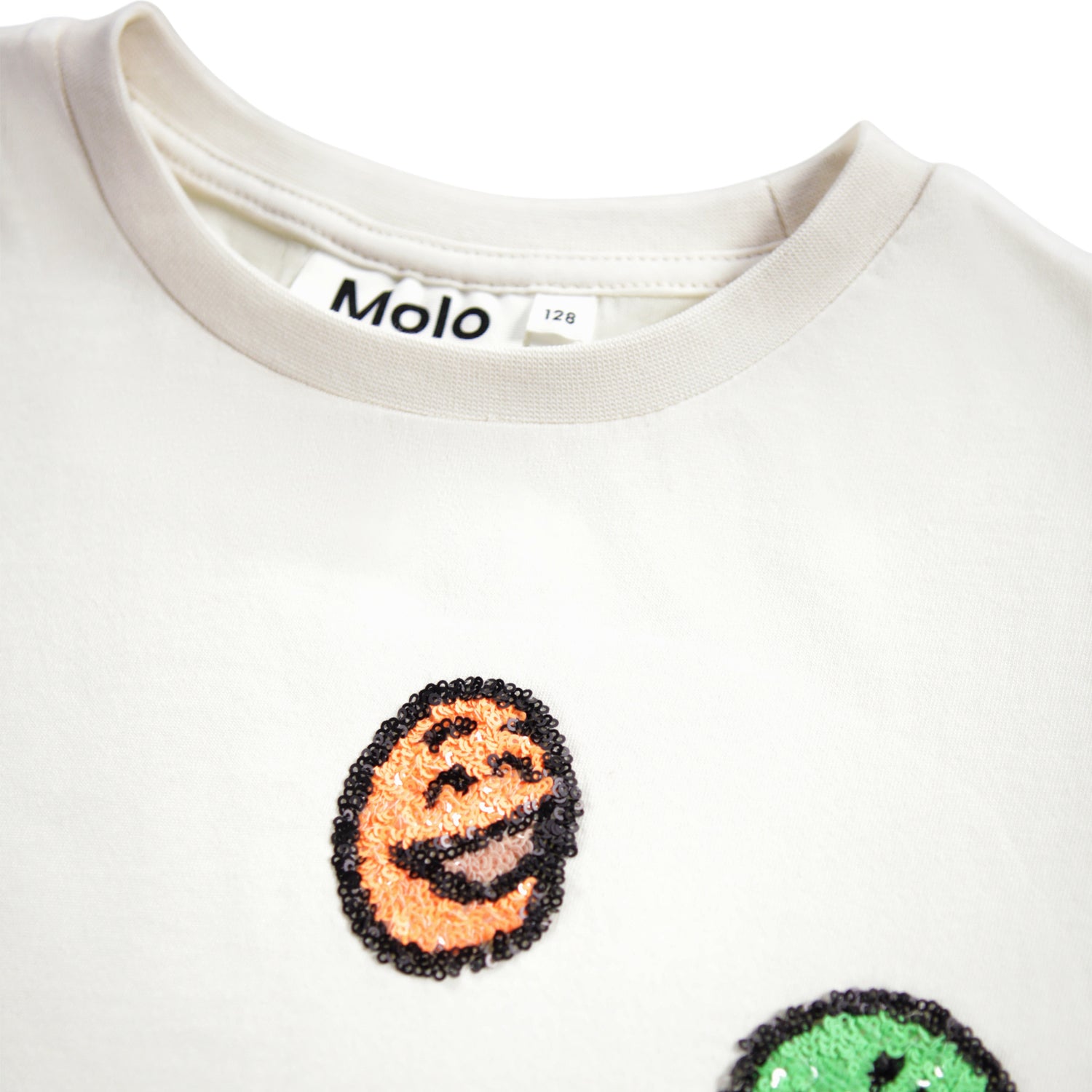 Das Molo Marge Sweatshirt mit Pailletten-Smileys ist weich, bequem und bringt Farbe, Spaß und gute Laune in jedes Kinderoutfit!