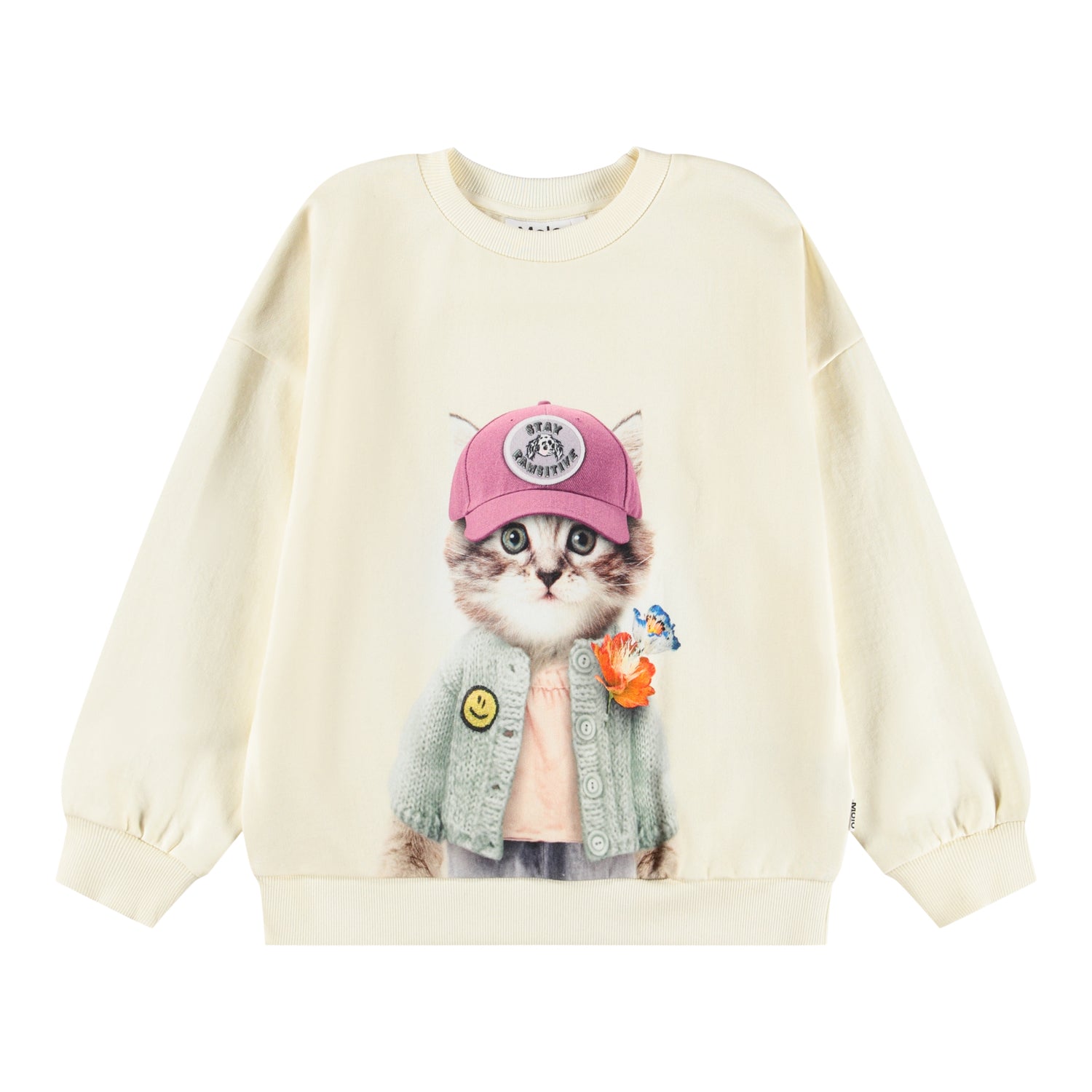 Das Molo Maxi Sweatshirt mit süßem Katzenmotiv ist weich, bequem und perfekt für kleine Katzenfans mit Sinn für Stil und Spaß!