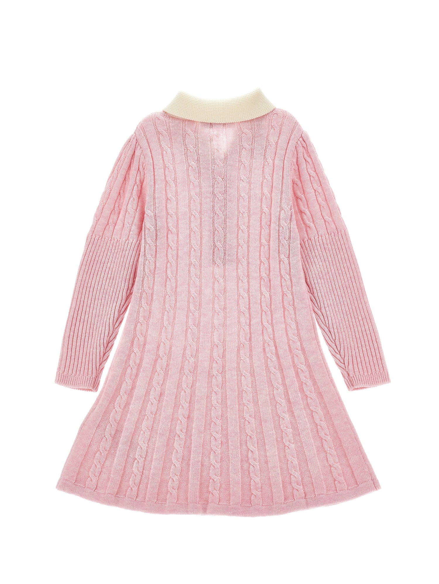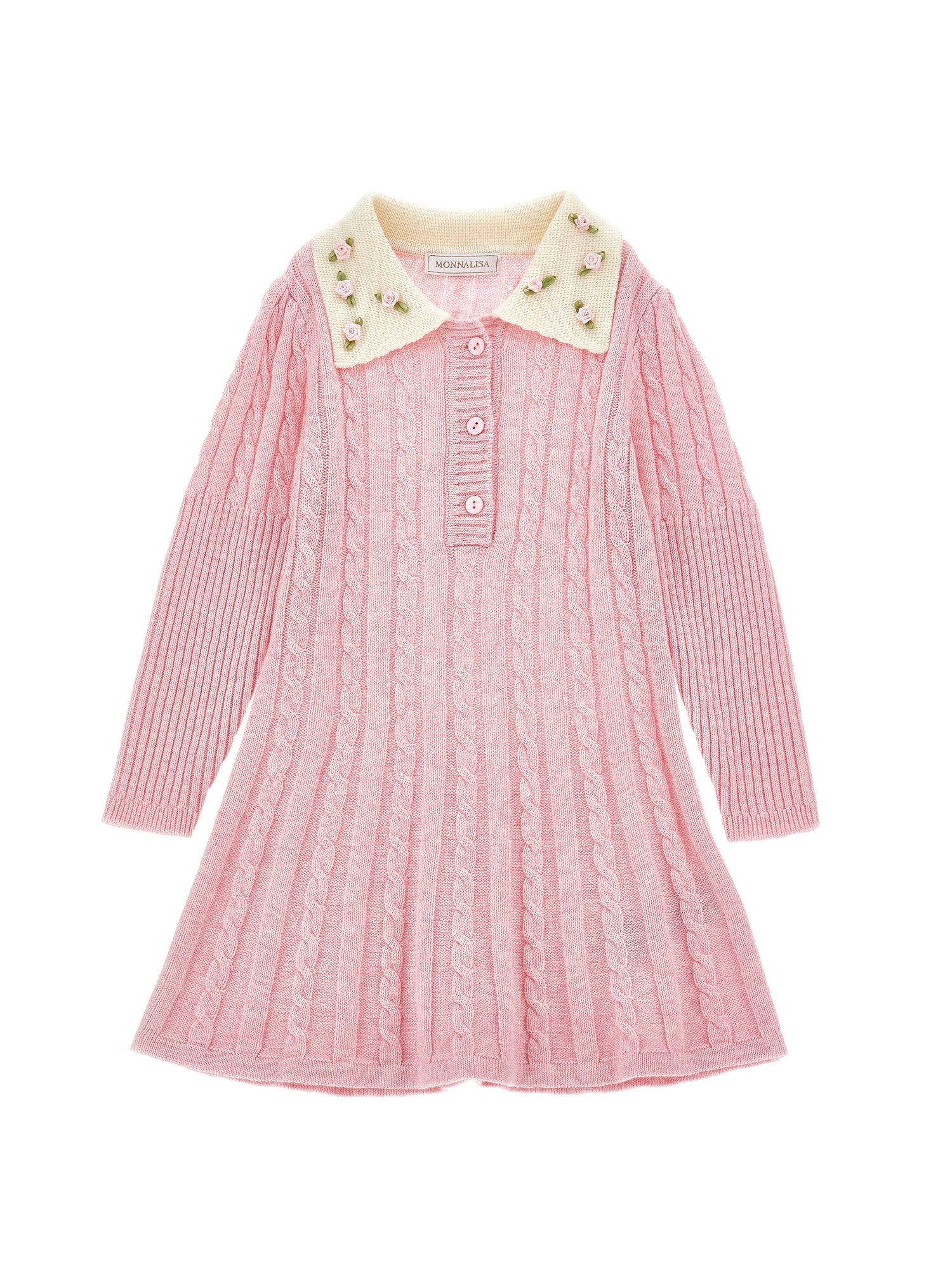 Monnalisa Strickkleid mit Zopfmuster & Blumenkragen