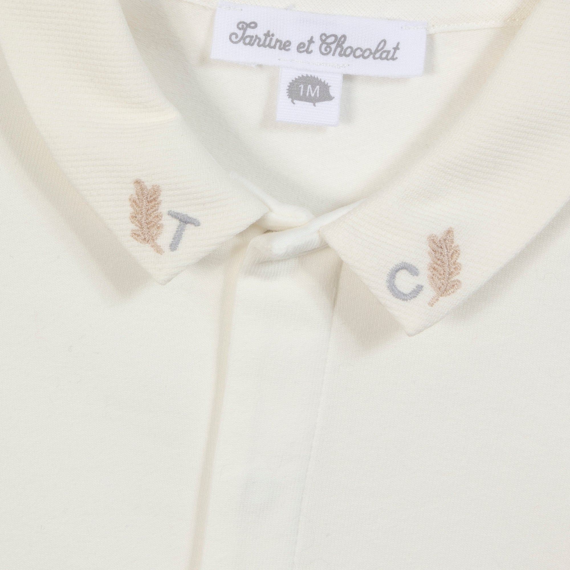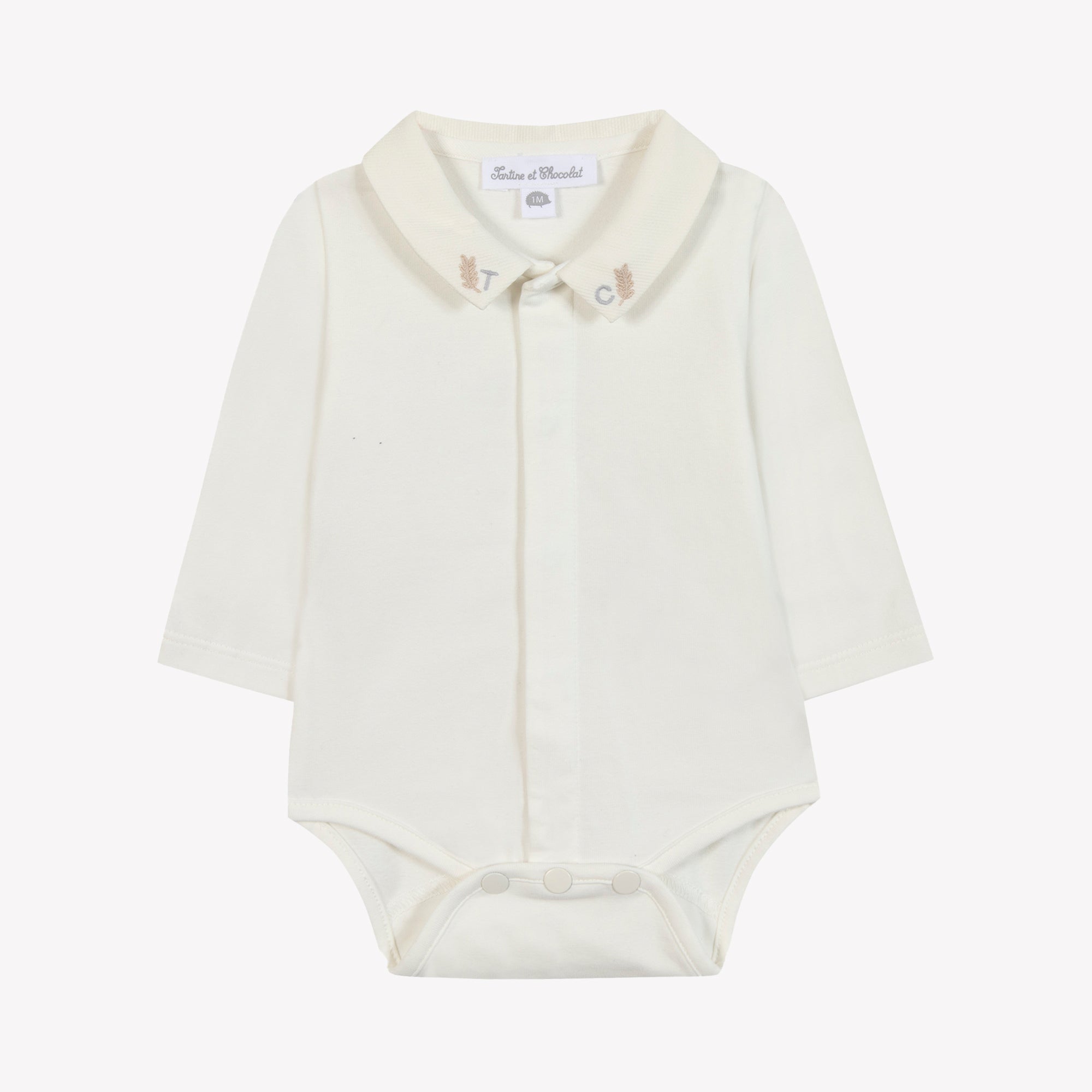 Der Tartine et Chocolat Body – Beige ist ein liebevoll gefertigtes Modell für Neugeborene und Kleinkinder. Der elegante Spitzenkragen ist mit zwei filigranen Blättern und den gestickten Initialen „TC“ verziert – eine feine, poetische Note, die dem Design Raffinesse verleiht. Aus weicher Baumwolle gefertigt, bietet der Body angenehmen Tragekomfort und umhüllt das Baby ab dem ersten Tag mit Zärtlichkeit und Stil.