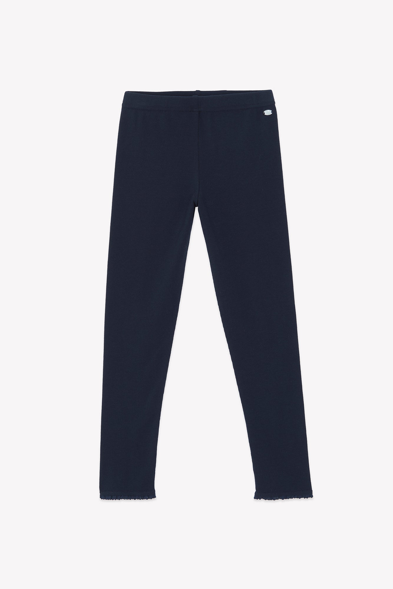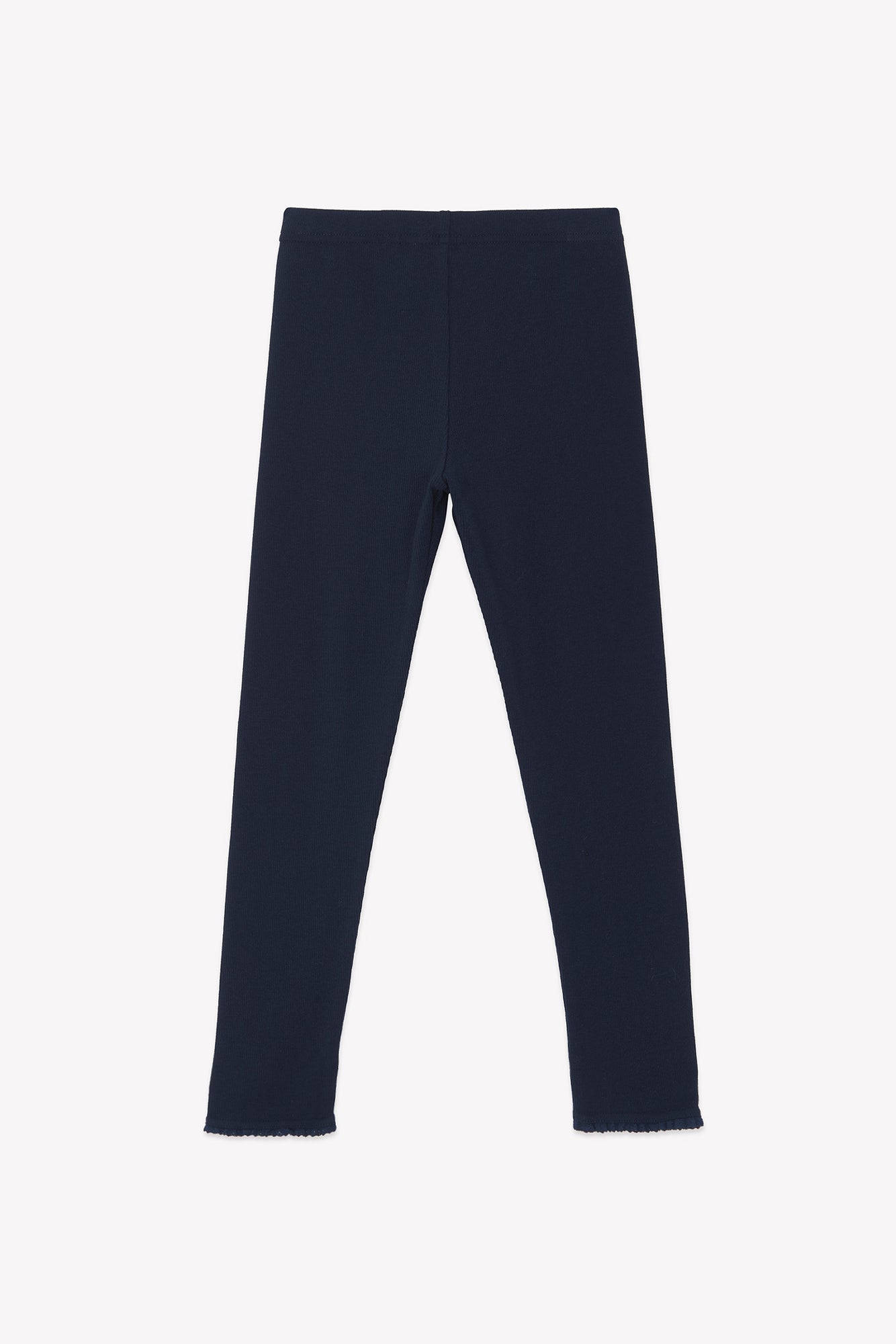 Die Tartine et Chocolat Leggings – Marine überzeugt durch ihre weiche, gerippte Baumwollqualität, die Komfort und Bewegungsfreiheit vereint. Feine Spitzendetails an den Beinabschlüssen verleihen dem Design eine feminine und raffinierte Note. Ob elegant kombiniert oder im Alltag getragen – diese Leggings ist ein vielseitiges Essential in der Garderobe kleiner Mädchen.