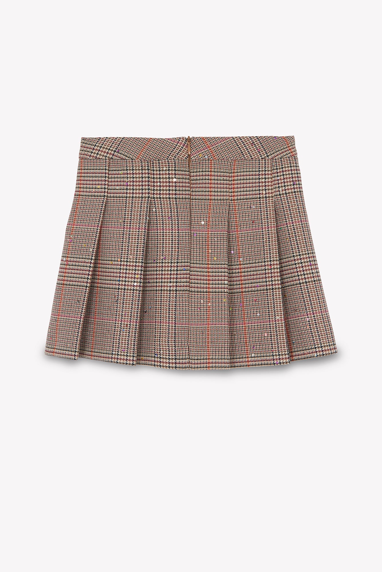 Der Tartine et Chocolat Rock Karo – Beige in zartem Sandton kombiniert Eleganz mit verspieltem Charme. Das klassische Karomuster wird durch dezent verstreute, mehrfarbige Pailletten modern akzentuiert. Die plissierte Verarbeitung verleiht dem Rock einen dynamischen Schwung und sorgt für einen glänzenden Auftritt – ideal für einen stilvollen und lebendigen Look.