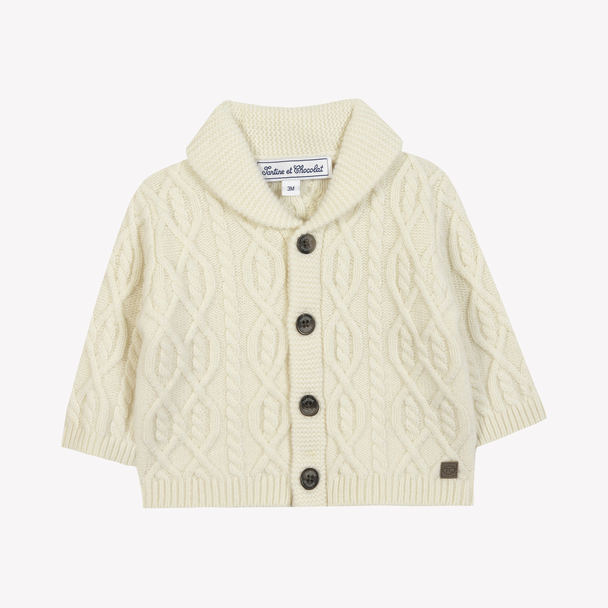 Tartine et Chocolat Cardigan mit Zopfmuster - Perlmutweiß
