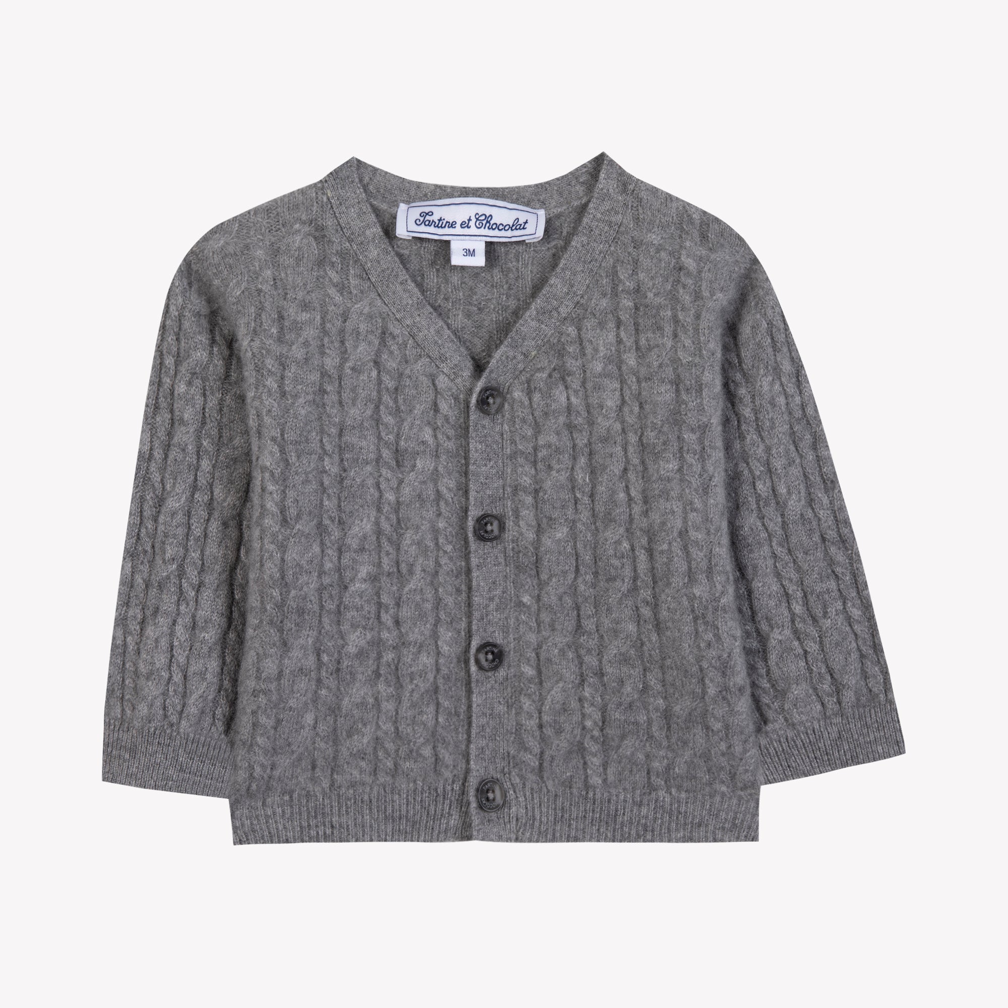 Tartine et Chocolat Cardigan mit Zopfmuster - Graumeliert