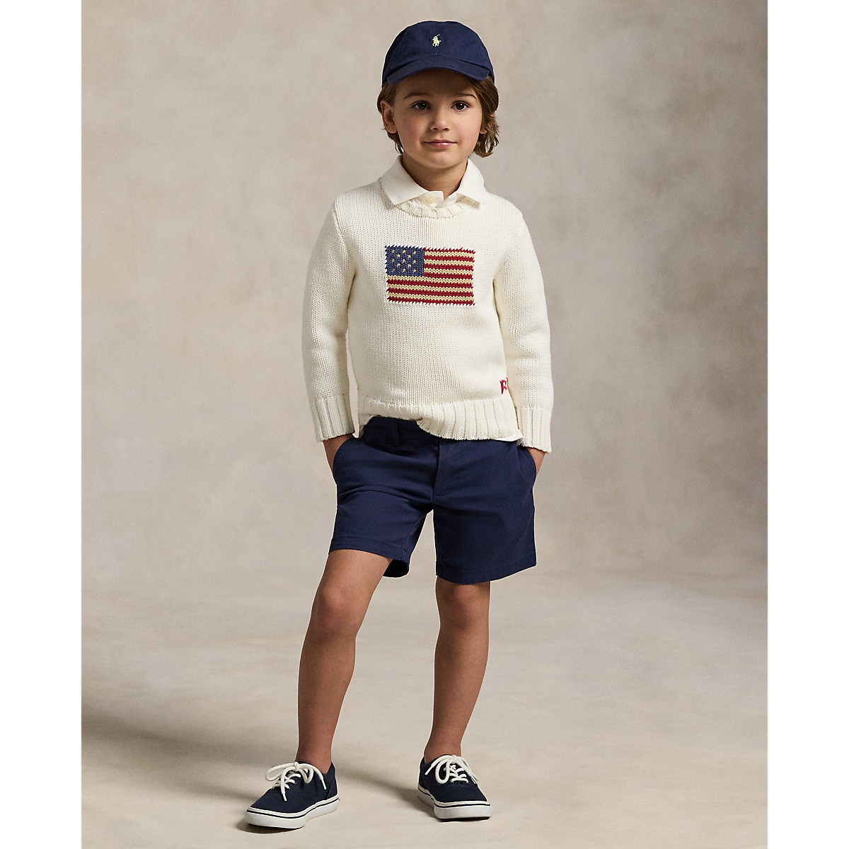 Der Polo Ralph Lauren Kids Klassische Flaggenpullover besteht aus weicher, gekämmter Baumwolle und zeigt die ikonische US-Flagge als aufwendig gearbeitete Intarsienstrickerei. Dieses zeitlose Design ist ein echtes Signature-Piece der Marke und verbindet amerikanisches Erbe mit hochwertiger Verarbeitung – ein Must-have für stilbewusste Kids.