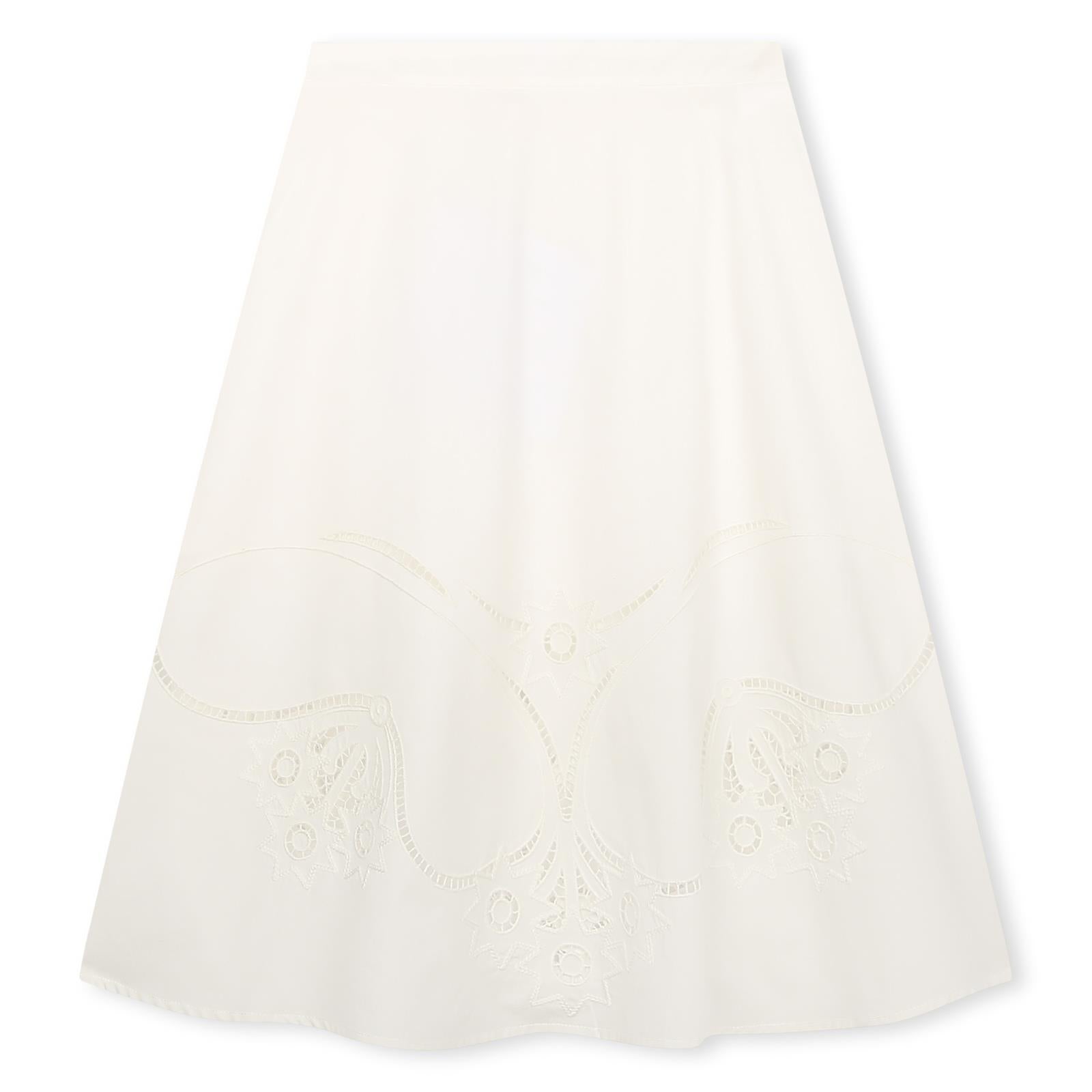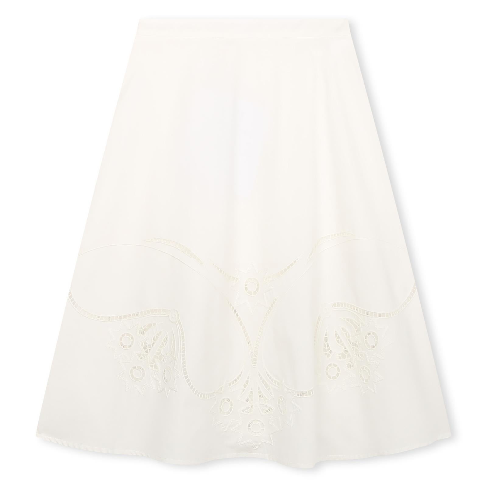 Die Chloé Rock in A Linie ist ein elegantes und exklusives Stück mit feiner Lochstickerei in strahlendem Weiß. Ihre feminine Passform betont die Silhouette und verleiht Ihnen eine luxuriöse Ausstrahlung. Perfekt für einen stilvollen Auftritt bei besonderen Anlässen.