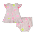 Das Billieblush - Kleid kommt mit einem passenden Windelhöschen und ist perfekt für sonnige Tage. Das ausgestellte Kleid hat Knöpfe am Rücken, während beide Teile aus einem fließenden Stoff mit einer Baumwoll-Innenlage gefertigt sind.
