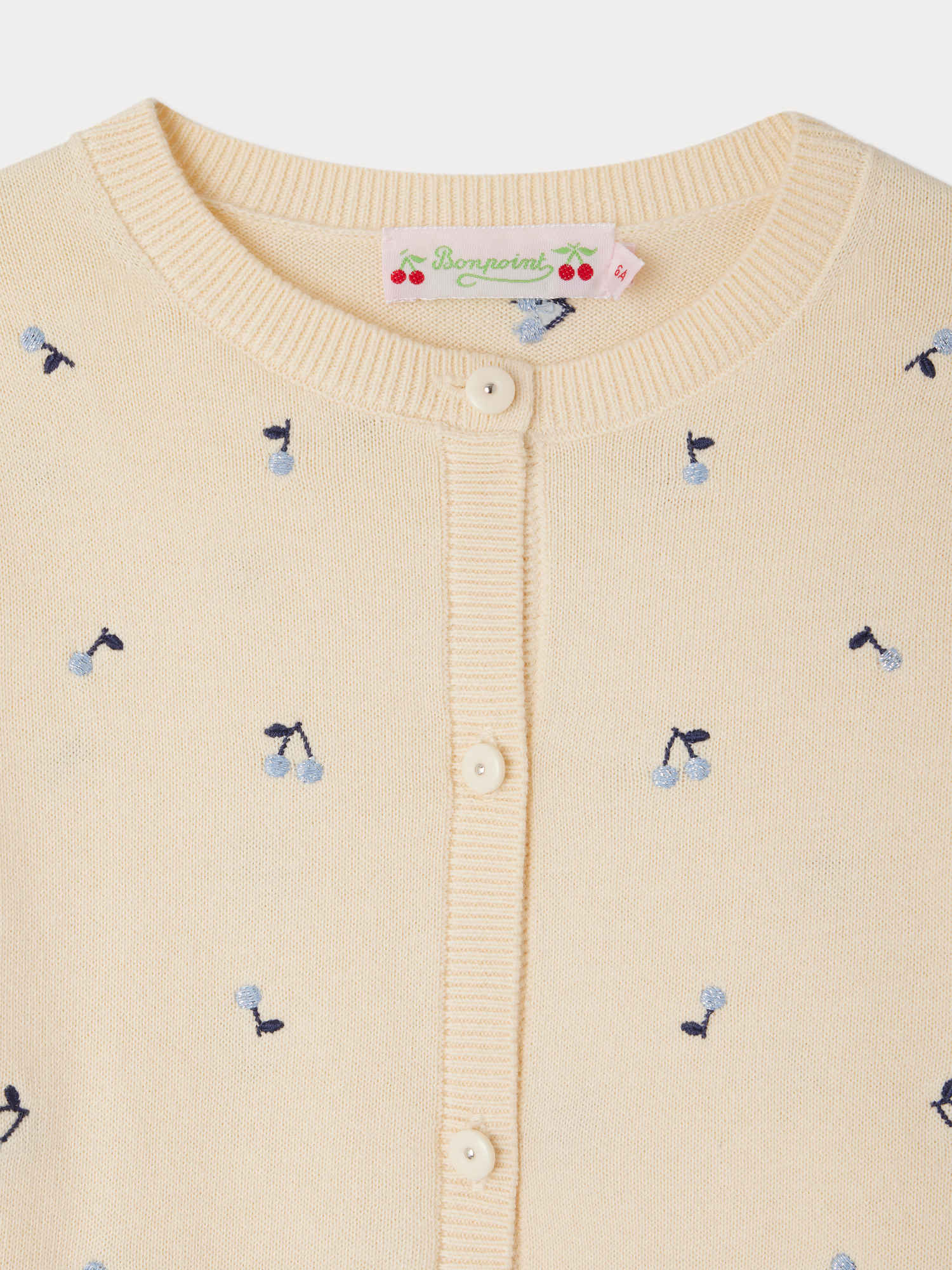 Das Bonpoint Cardigan Feli ist das perfekte Kleidungsstück für stilbewusste Kinder. Mit seinem süßen Design aus blauen Kirschen wird es zum Blickfang in jeder Garderobe. Das hochwertige Material sorgt für angenehmen Tragekomfort und die zeitlose Gestaltung für einen vielseitigen Einsatz. Ein Must-Have für jeden Anlass!