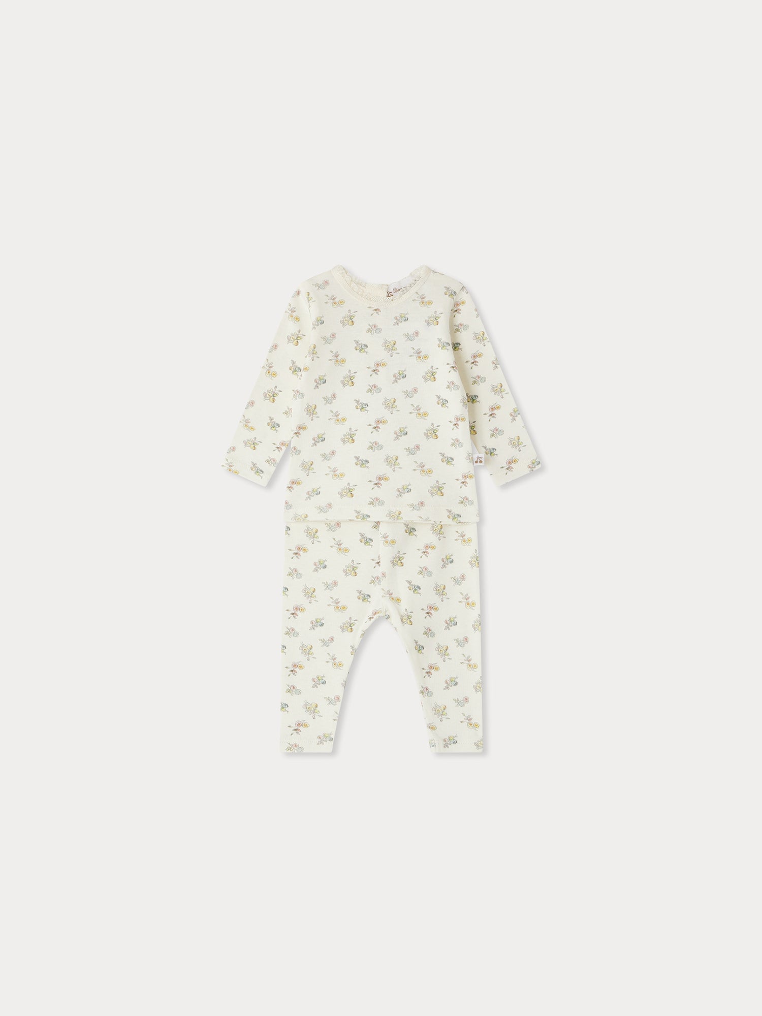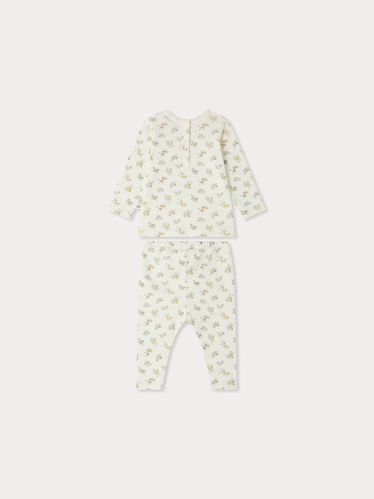 Das Bonpoint - Set Genna für Babys vereint Komfort und Stil. Hergestellt aus zertifizierter Bio-Baumwolle, ist es mit einem zauberhaften Allover-Blumendruck verziert. Die Spitze am Halsausschnitt und der praktische Druckknopfverschluss auf der Rückseite runden das Design ab.