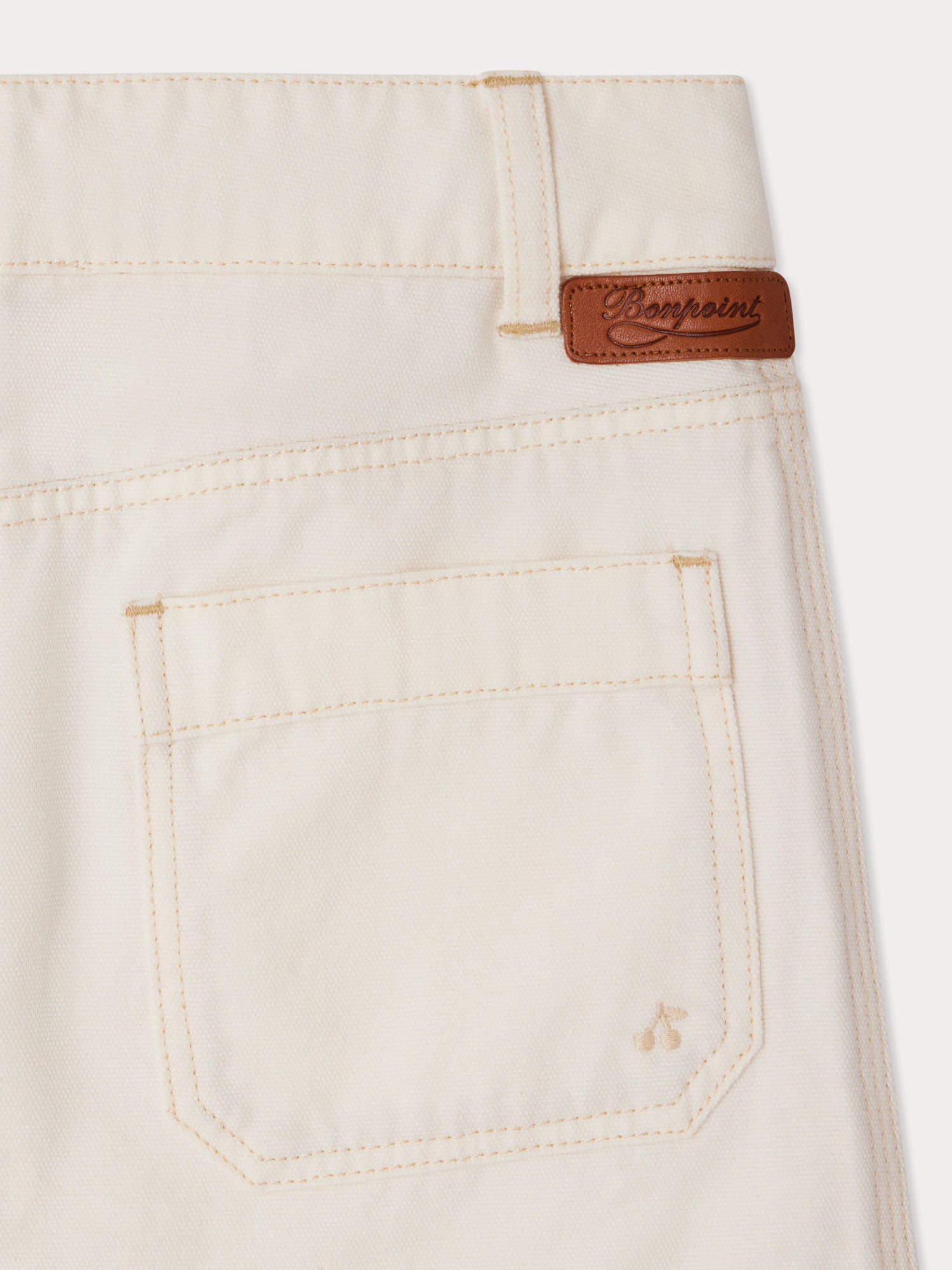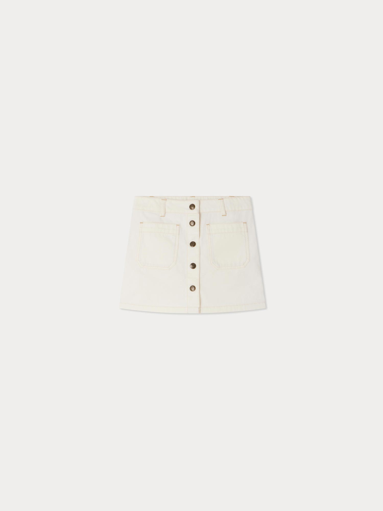 Der Bonpoint - Rock mit Knöpfen Elise ist eine zeitlose Bereicherung für die Garderobe jedes Mädchens. Mit einem verstellbaren Bund passt er sich verschiedenen Körperformen an und kann über einen längeren Zeitraum getragen werden. Der Knopfverschluss vorne und die liebevolle Kirschenstickerei auf der Gesäßtasche verleihen ihm eine verspielte und besondere Note.