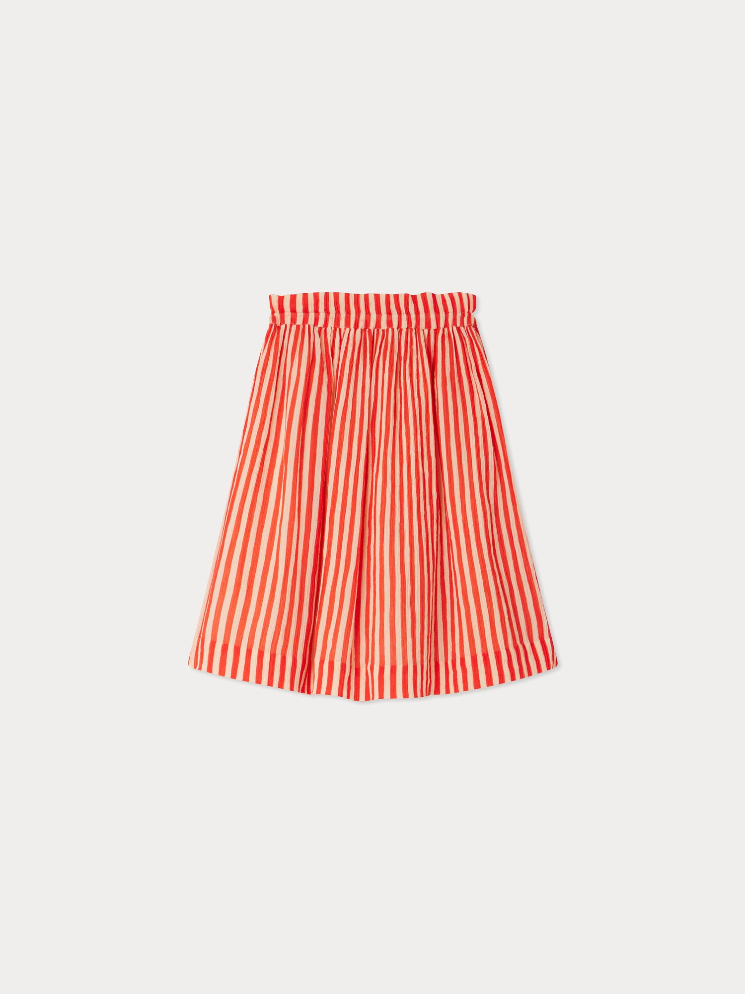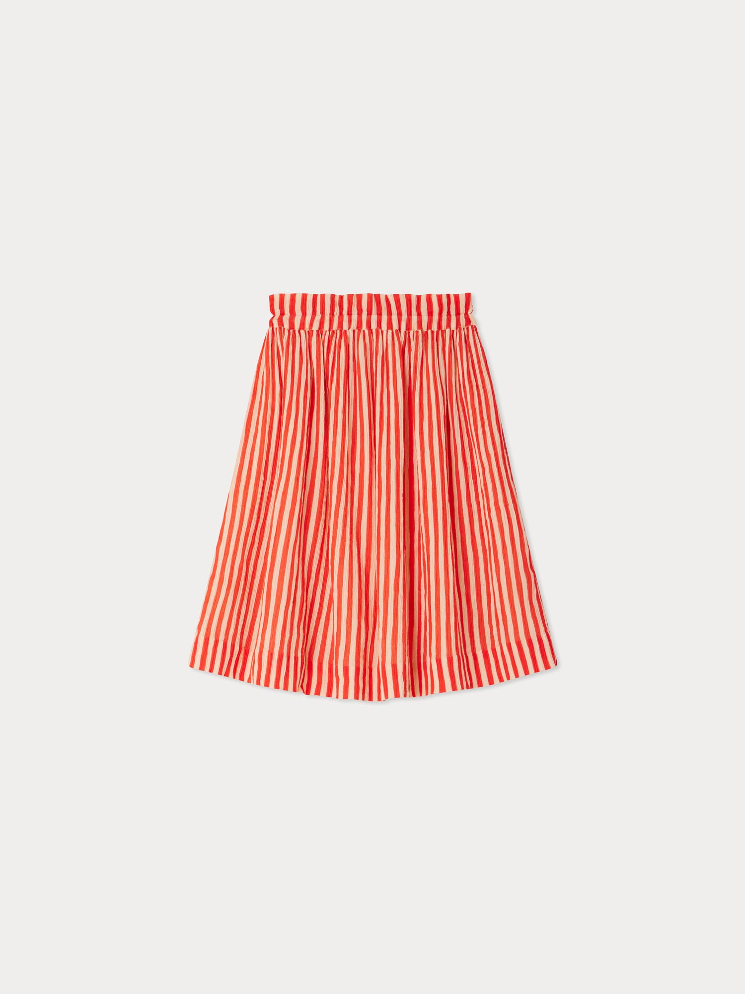 Der bezaubernde Bonpoint - Rock Elyna für Mädchen aus hochwertigem Seersucker-Stoff mit breiten Streifen vereint Stil und Komfort. Das zweifarbige Design wird durch einen elastischen Bund ergänzt, der für ein angenehmes Tragegefühl im Alltag sorgt. Ein weiches Baumwoll-Voile-Futter und der breite Saum verleihen dem Rock eine elegante Note und machen ihn zu einem vielseitigen Kleidungsstück für jeden Anlass.