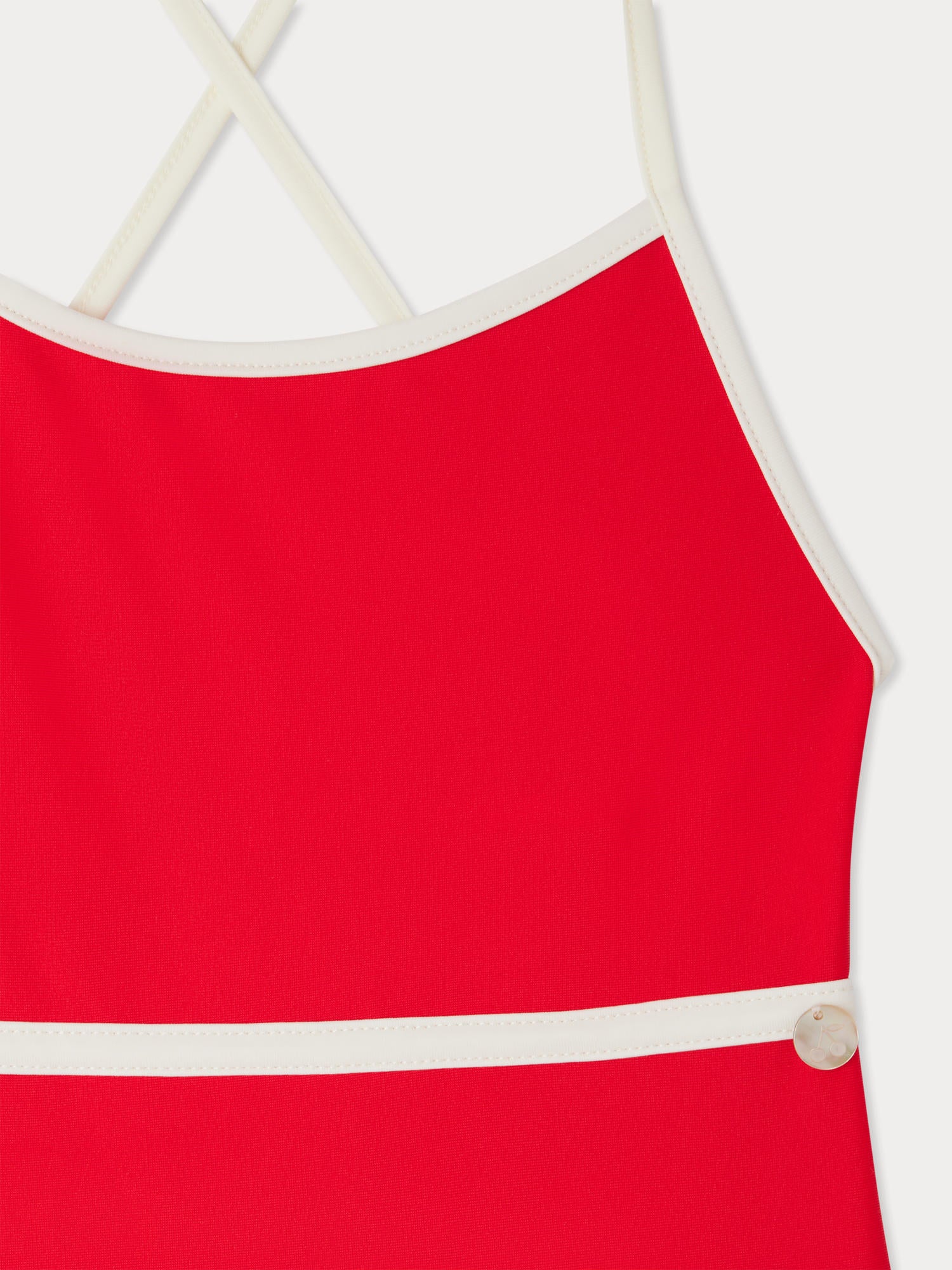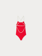 Der Bonpoint - Badeanzug Altamura im Retro-Look lässt kleine Mädchen strahlen. Die schmalen, überkreuzten Träger am Rücken sorgen für einen sicheren Sitz. Hergestellt aus recyceltem Polyamid, bietet der Einteiler nicht nur Komfort, sondern auch Nachhaltigkeit. Ein Perlmutt-Tag unterhalb der Brust auf der linken Seite setzt einen eleganten Akzent.