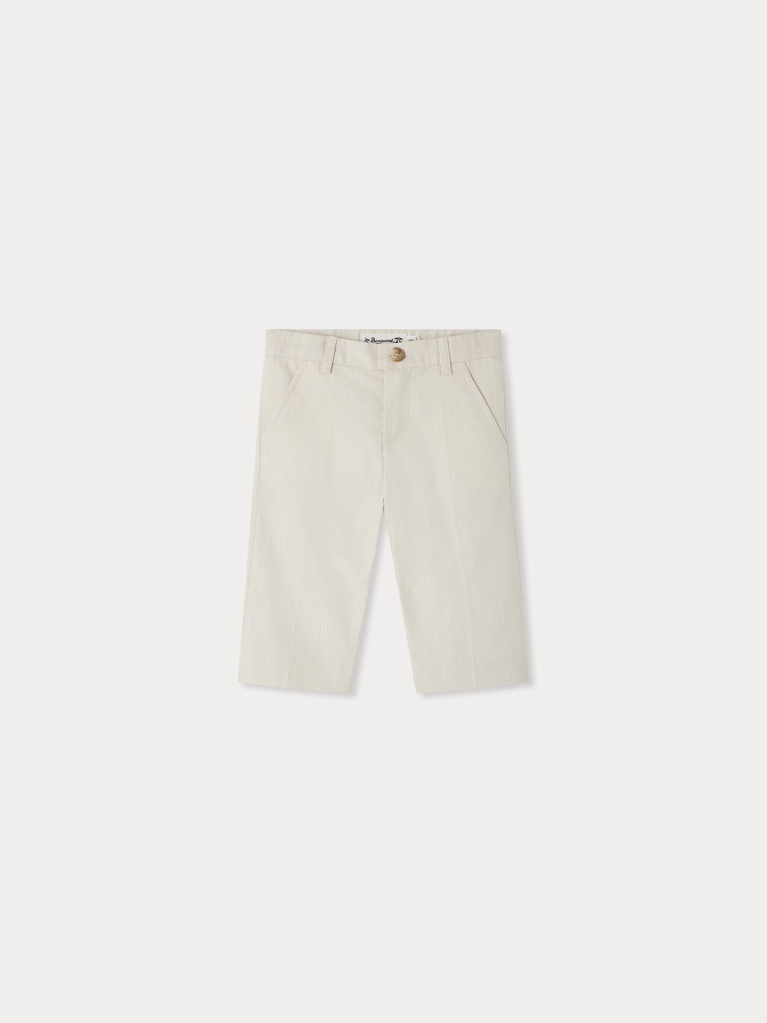 Die Bonpoint - Hose mit feinen Streifen Decibel für Babys aus einfarbigem, fein geripptem Baumwoll-Stretchstoff ist ideal für besondere Anlässe. Schlitztaschen vorne und zwei Pfeifentaschen auf der Rückseite verleihen der Hose eine stilvolle Note. Der Knopf- und Reißverschluss vorne sorgt für praktischen Komfort und eine perfekte Passform.