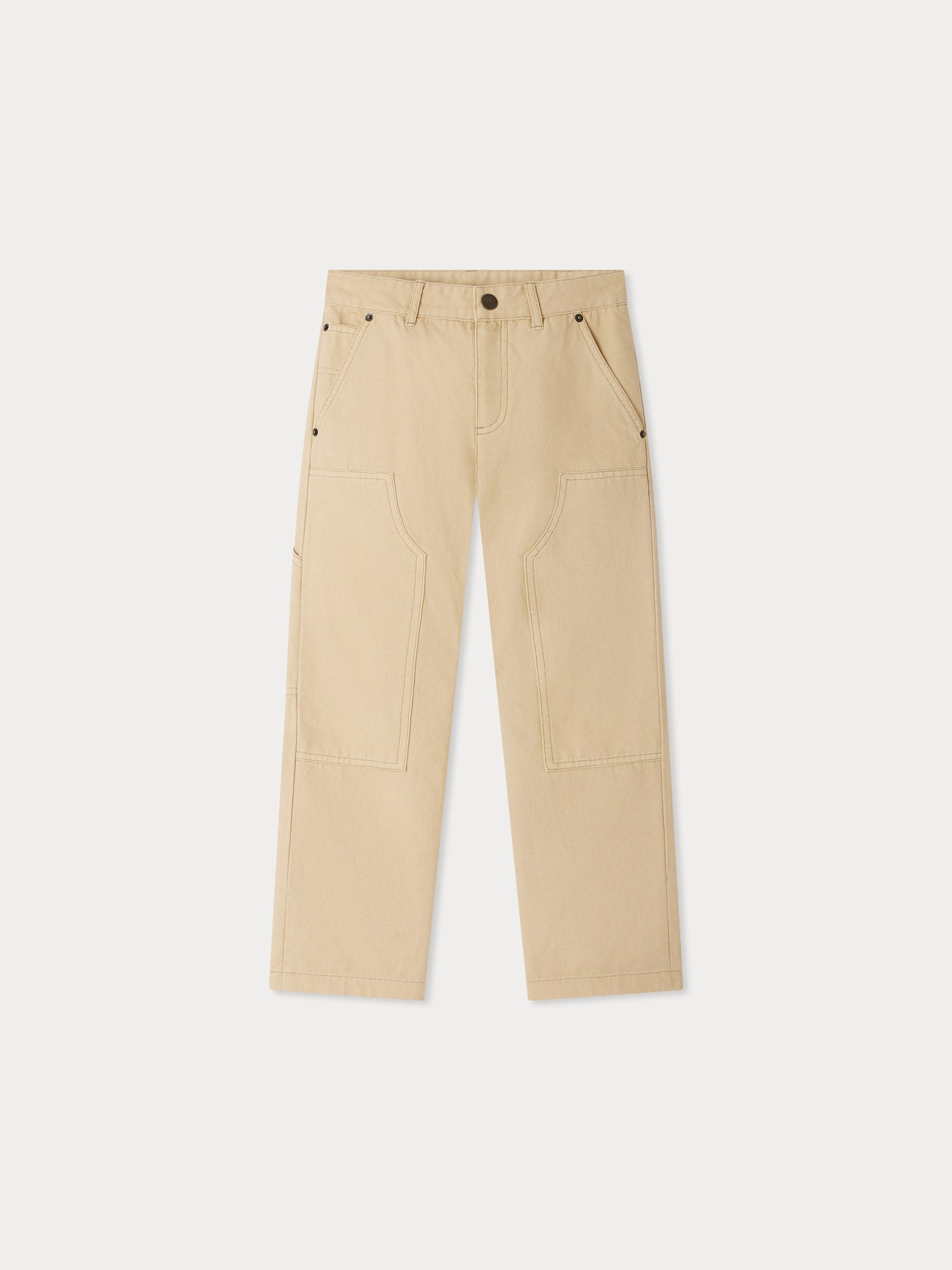 Die Bonpoint - Hose Ewann besticht durch ihr ausgestelltes Bein und den Retro-Touch. Die beiden aufgesetzten Taschen vorne und hinten sowie die süße Kirschen-Stickerei auf der Rückseite verleihen dem einfarbigen Design eine besondere Note. Hergestellt aus hochwertiger Baumwolle, bietet die Hose sowohl Stil als auch Komfort.