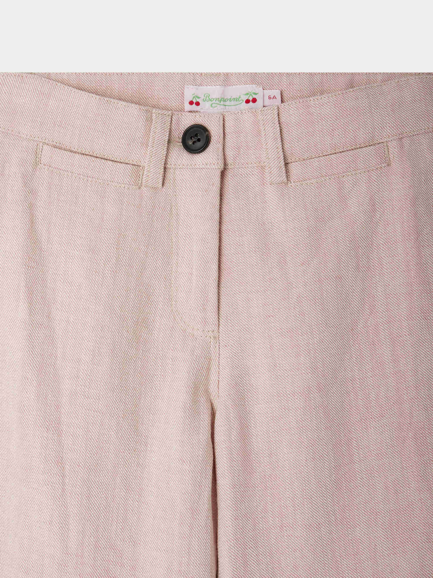 Exklusiv und elegant, die Bonpoint Pantalon Gersande ist ein Must-Have für jeden Kleiderschrank. Die rosa Hosen sind aus hochwertigem Material gefertigt und bieten höchsten Tragekomfort. Mit ihrem zeitlosen Design und der bequemen Passform sind sie perfekt für jeden Anlass geeignet. Verwöhnen Sie sich mit diesen luxuriösen Culotte-Hosen von Bonpoint.
