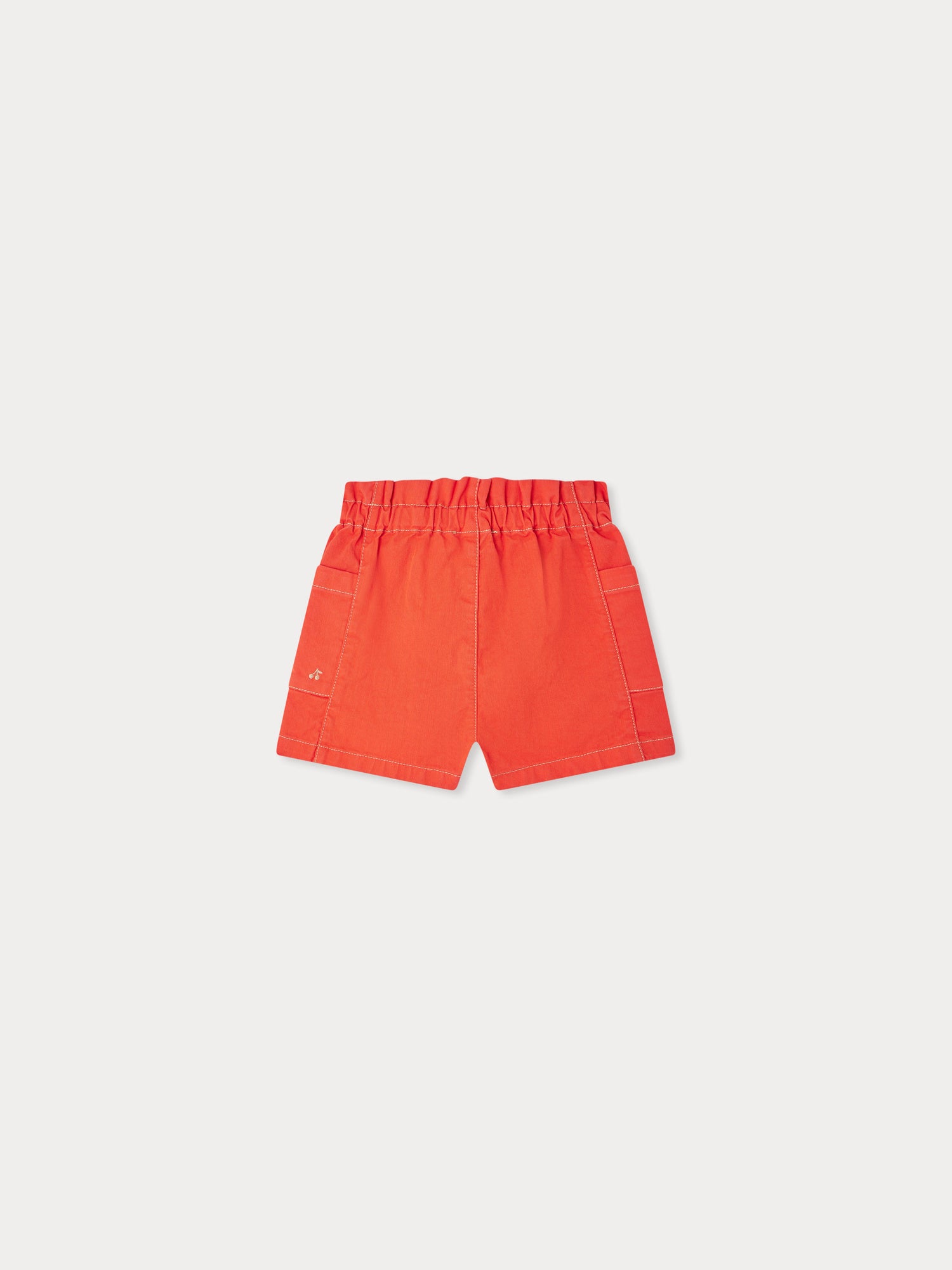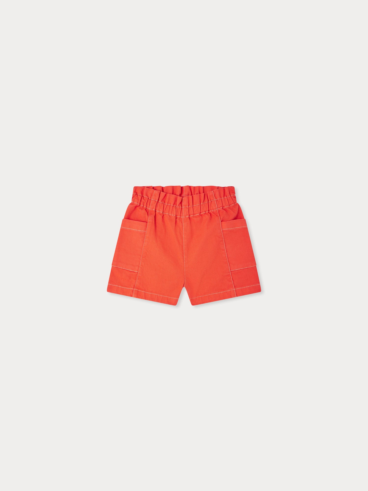 Die leichte Bonpoint - Jeansshort Nougat für Babys sind sowohl stilvoll als auch bequem dank des breiten, gerafften elastischen Bundes. Aus Baumwoll-Denim gefertigt, bieten sie eine angenehme Passform. Zwei Seitentaschen und kontrastierende Steppnähte setzen moderne Akzente, während eine der Taschen mit einer süßen aufgestickten Kirsche verziert ist.