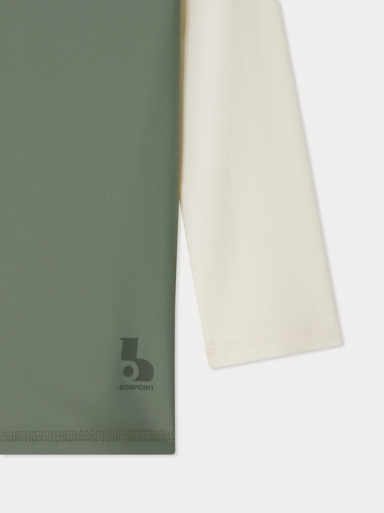 Das Bonpoint - UV-Schutz Shirt Caius ist perfekt, um kleine Jungen am Strand oder Pool vor der Sonne zu schützen. Es besteht aus recycelten Materialien und bietet mit langen Raglanärmeln und einem Rundhalsausschnitt optimalen Komfort. Das Bonpoint-Logo ist dezent auf der Vorderseite links aufgedruckt und setzt einen eleganten Akzent.