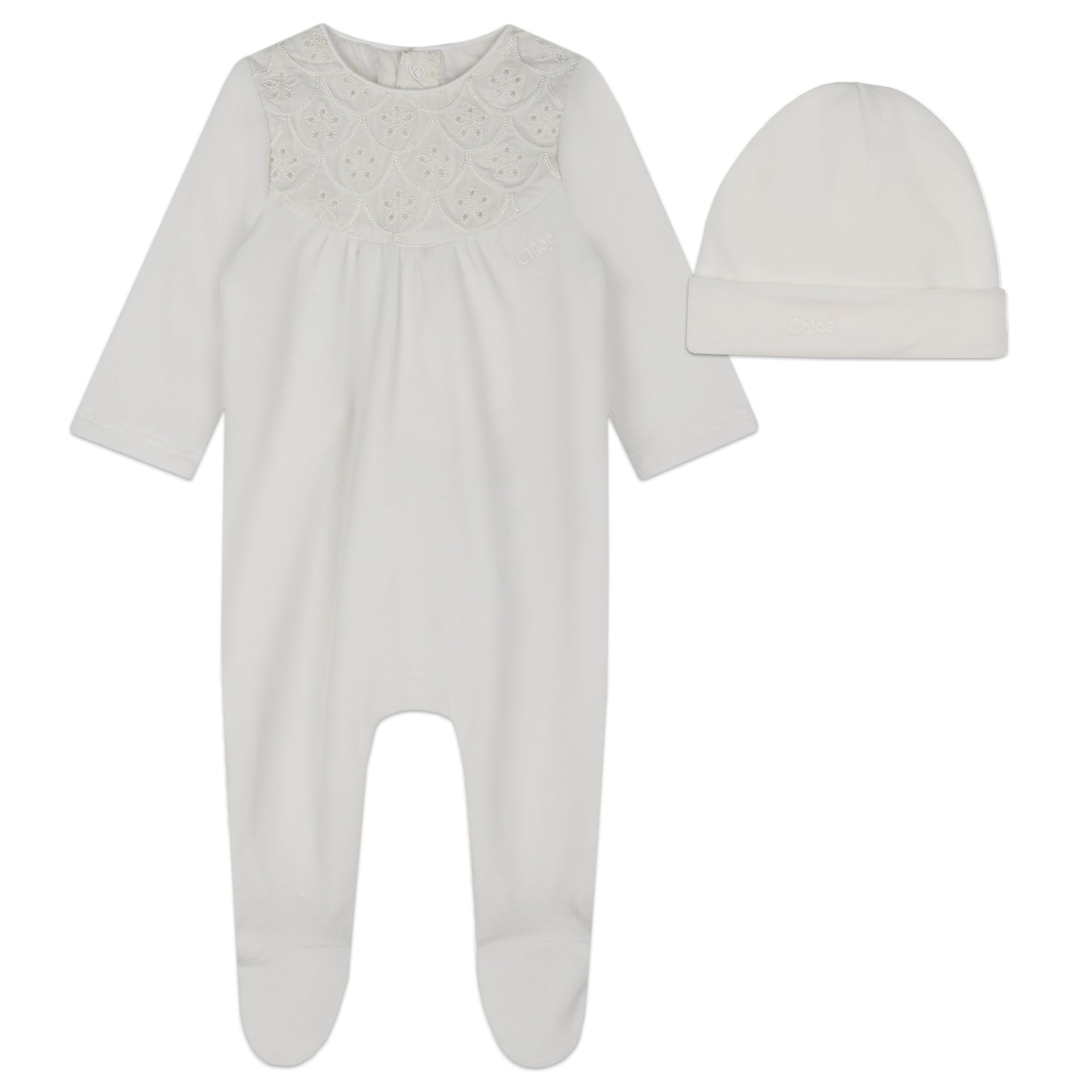 Verzaubern Sie Ihr Baby in pure Eleganz mit dem Chloé Kids Set. Das Set enthält einen bezaubernden Strampler mit verspielter Strickerei auf der Vorderseite und eine passende Mütze. Perfekt für kleine Mädchen, die stilvoll gekleidet sein sollen. Hergestellt aus hochwertigem Material, damit sich Ihr Baby immer wohl und luxuriös fühlt. Nur für die Anspruchsvollsten.
