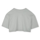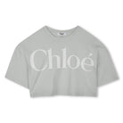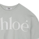 Das Chloé Kids T-Shirt in milchgrün mit Rundhalsausschnitt aus Bio-Baumwolljersey hat eine übergroße Passform und einen großen Chloé Logoaufdruck auf der Brust.
