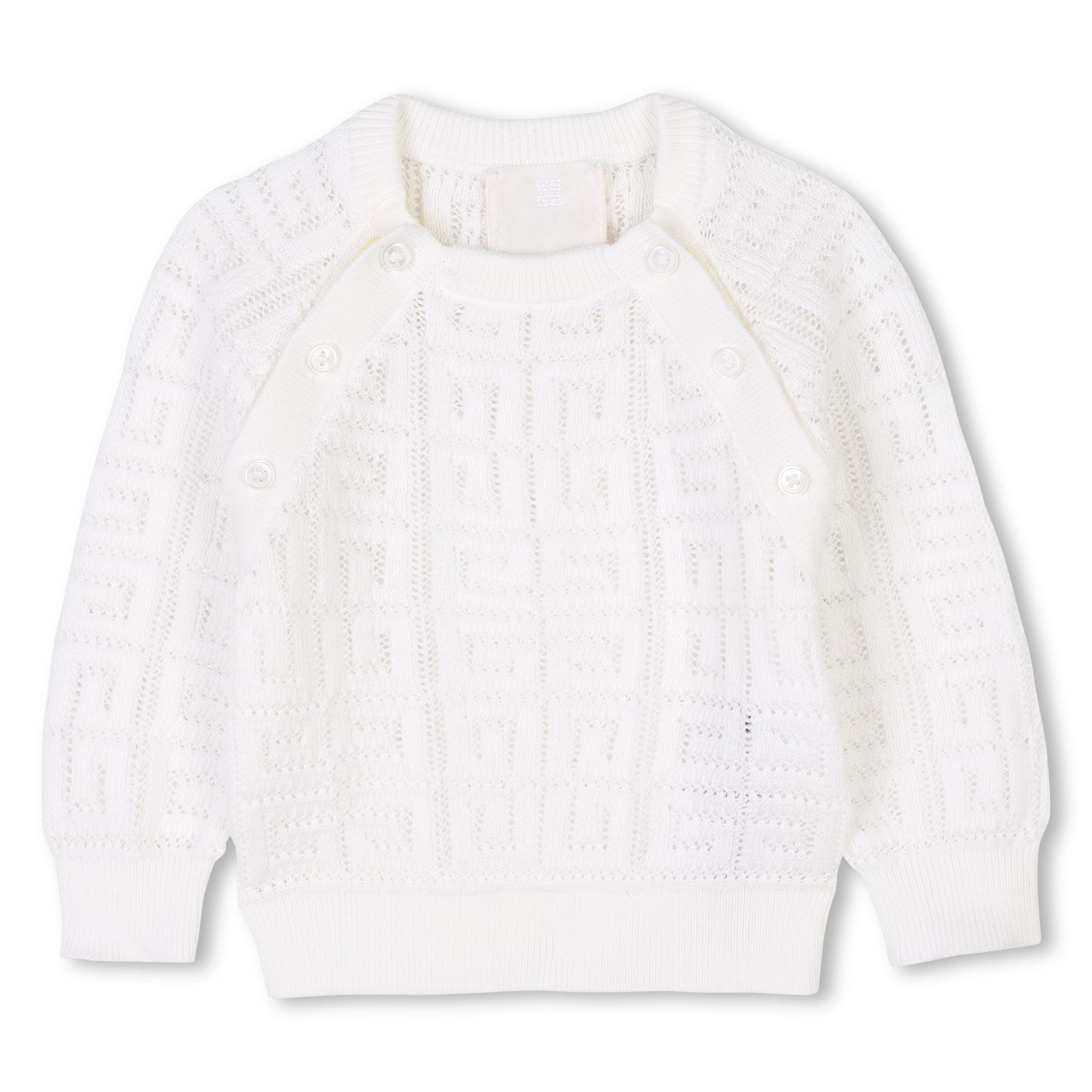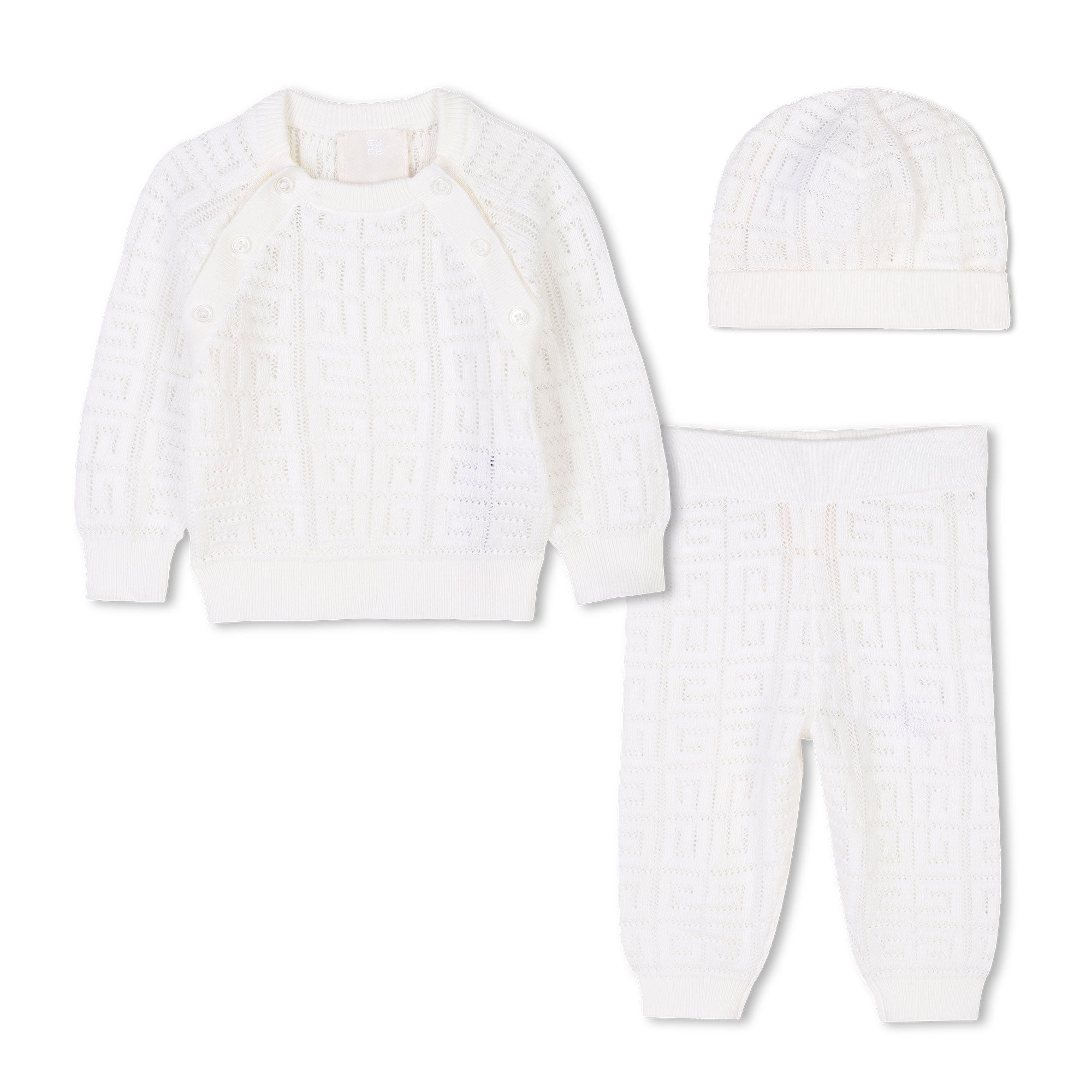 Das Givenchy Kids - Babyset in Weiß ist eine elegante und komfortable Wahl für die Kleinsten. Es besteht aus hochwertigen Materialien, die für weichen Tragekomfort und eine angenehme Passform sorgen. Das Set besteht aus einem Pullover, einer Hose und einer Mütze.