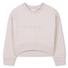Dieses Givenchy Kids - Sweatshirt Creme vereint Stil und Komfort. Gefertigt aus 85 % Bio-Baumwolle und 15 % Polyester, bietet es ein weiches Tragegefühl. Der markante Logo-Print auf der Vorderseite und das dezente 4G-Motiv auf dem Rücken verleihen ihm eine exklusive Note. Mit Rundhalsausschnitt, gerippten Bündchen und überschnittenen Schultern sorgt es für einen trendigen, lässigen Look – perfekt für jeden Tag.