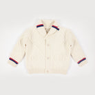 Entdecken Sie den stilvollen Gucci Kids Cardigan in klassischem Weiß mit auffälligen rot-blauen Akzenten.