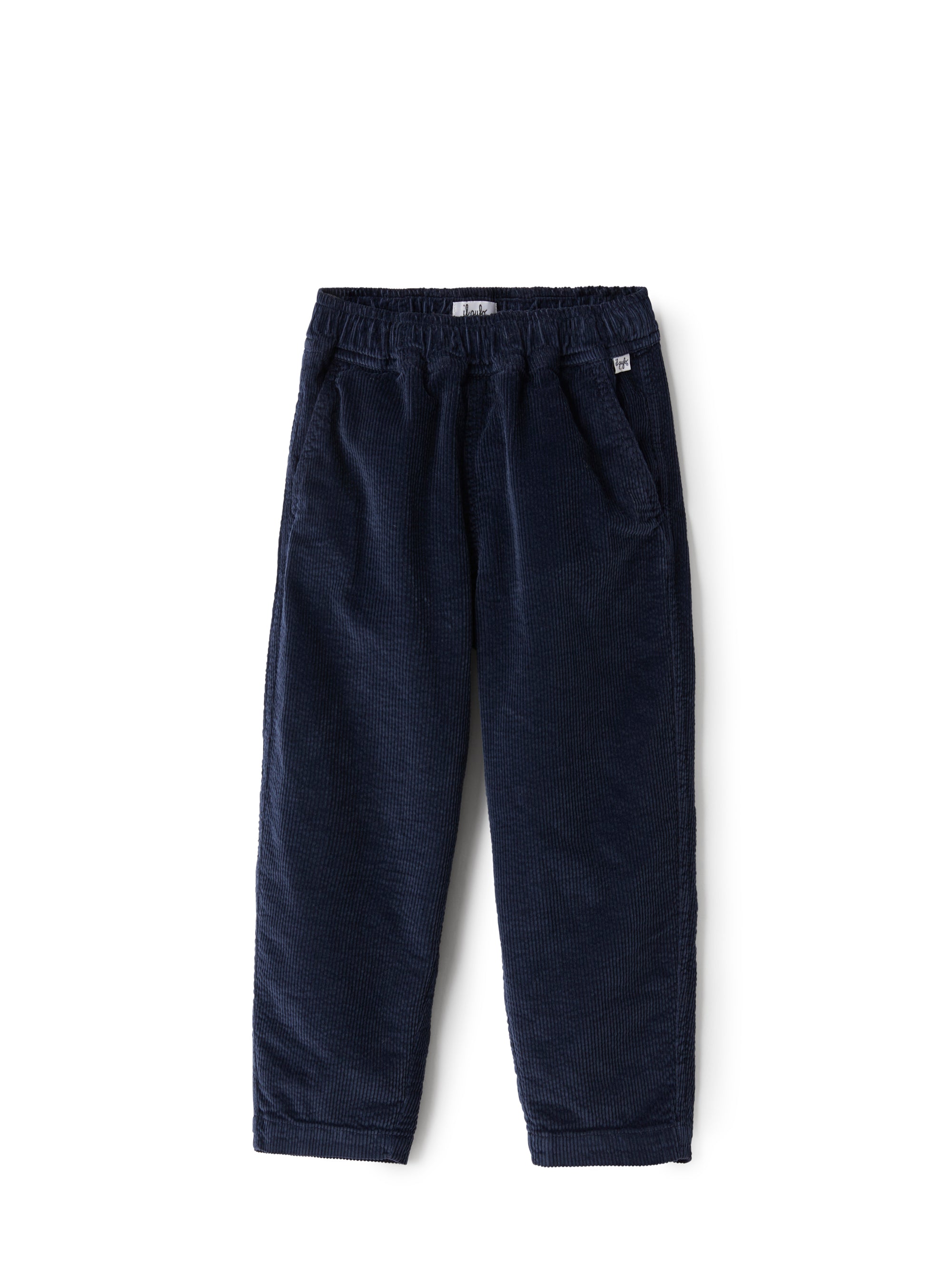 Genießen Sie den Tragekomfort und den stilvollen Look mit der dunkelblauen Il Gufo Cordhose. Die Karottenhose aus elastischem Baumwollcord bietet eine perfekte Passform und ist mit einem Gummizug im Bund und schrägen Eingrifftaschen ausgestattet. Ein Must-Have für jedes Kind.st perfekt für jeden Anlass. Mit dem Zugband zum Binden lässt sich die Hose individuell anpassen und garantiert somit einen bequemen Sitz. Dank der hochwertigen Verarbeitung und des zeitlosen Designs ist diese Cordhose sowohl langlebig als auch stilsicher. Ein absolutes Must-Have für jeden Kleiderschrank!