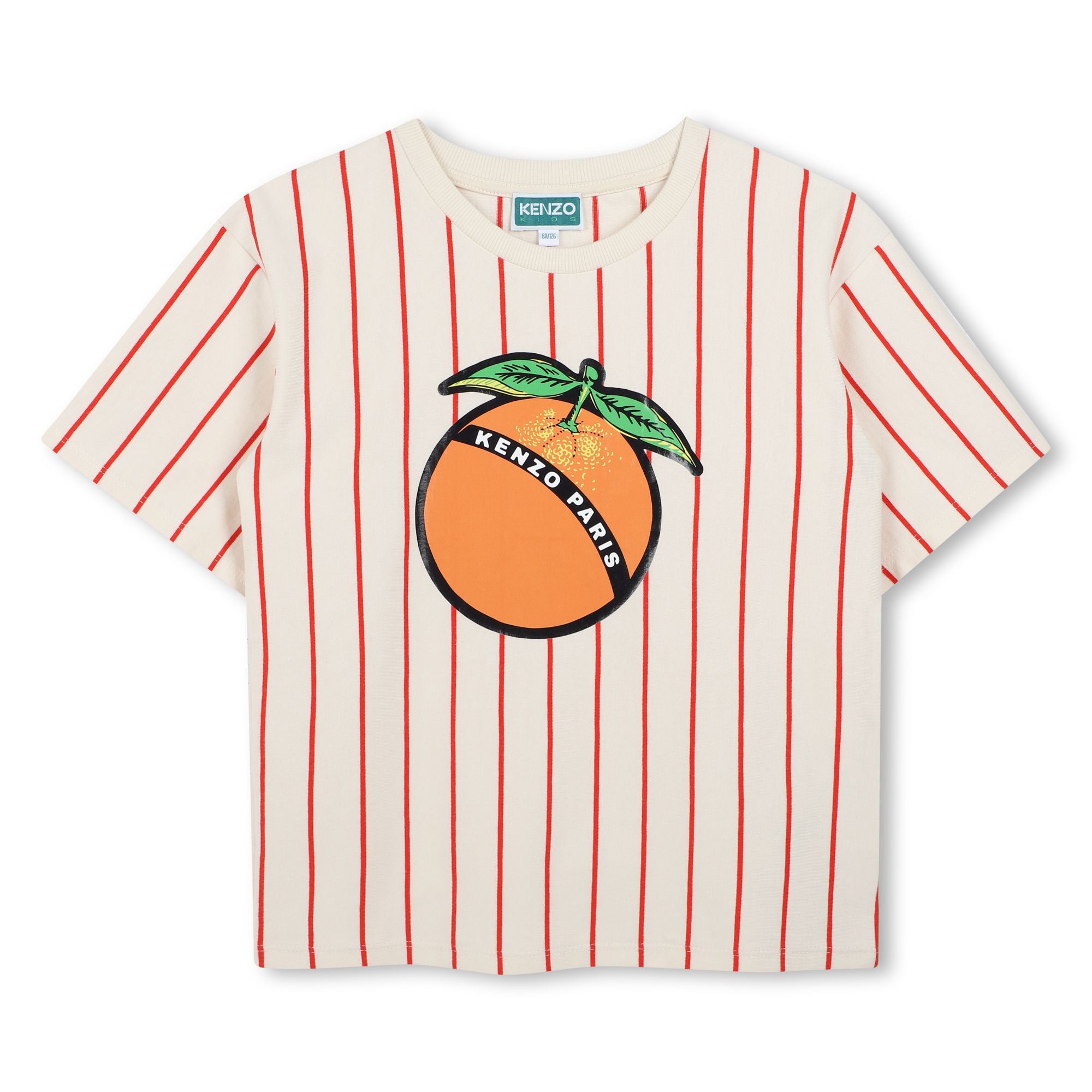 Das Kenzo Kids T-Shirt überzeugt mit einem markanten Streifenmuster und einem auffälligen Logo-Print auf der Vorderseite. Hergestellt aus 100 % hochwertiger Baumwolle, bietet es optimalen Tragekomfort und hohe Langlebigkeit. Der klassische Rundhalsausschnitt rundet das zeitlose Design perfekt ab.