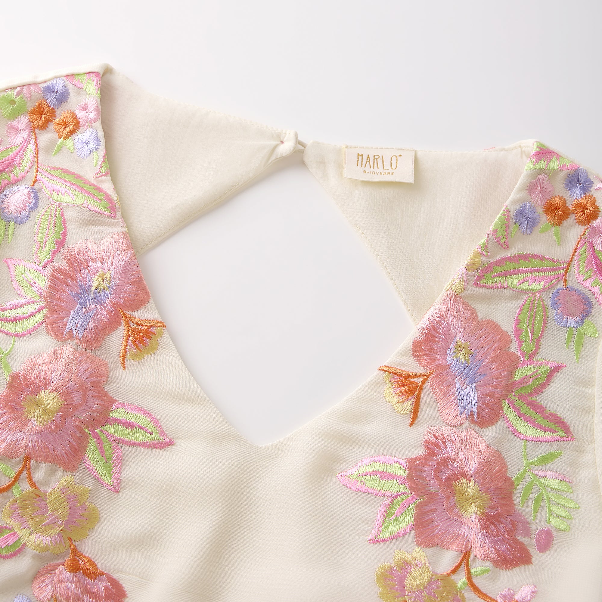 Das Marlo Kids Sasha Maxikleid vereint romantische Eleganz mit kunstvollen Details und ist perfekt für besondere Anlässe. Die exklusiven, floralen Stickereien und die luftigen Ballonärmel machen dieses Kleid zu einem echten Highlight für unvergessliche Momente.